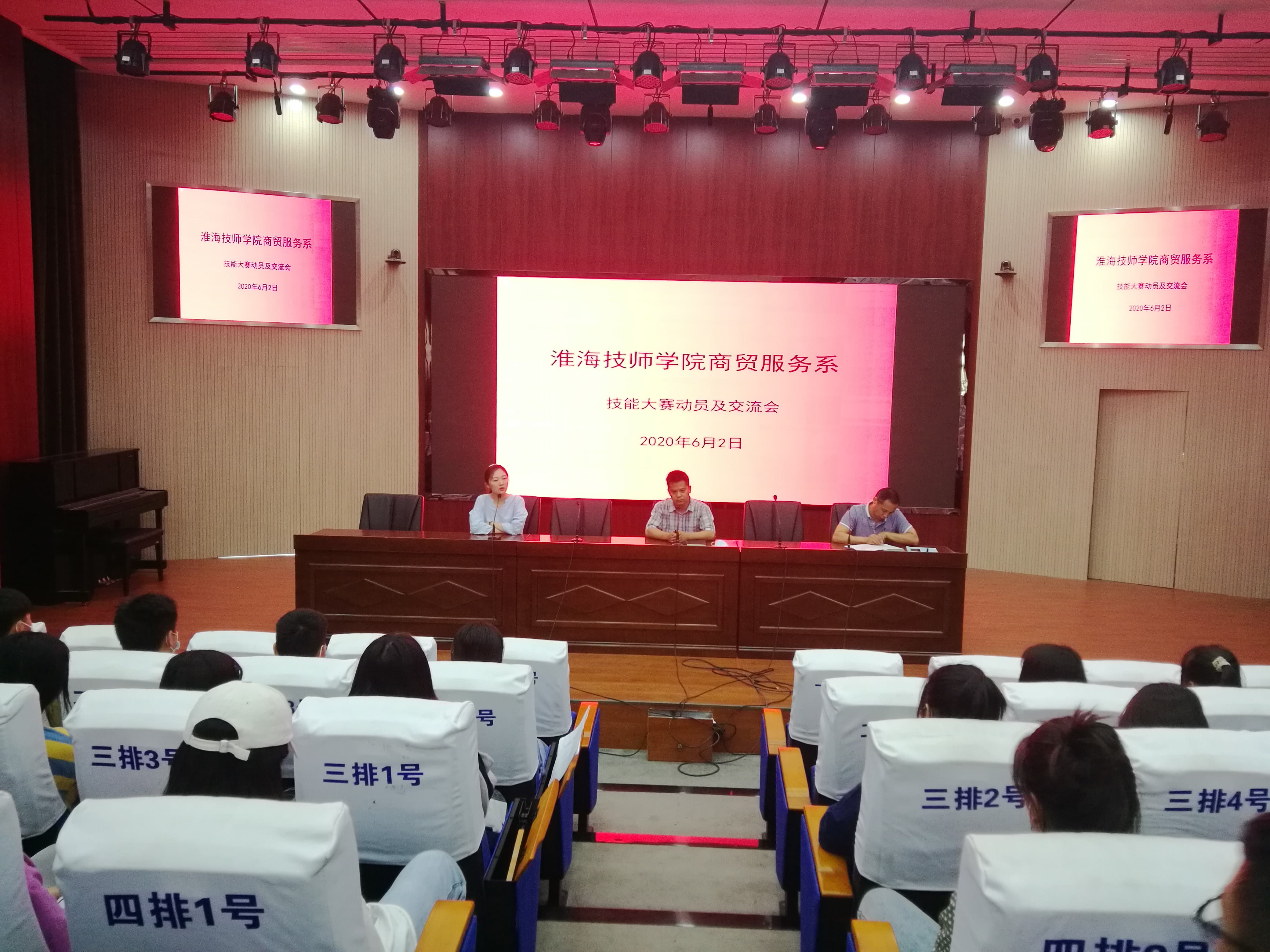 为发扬“劳动光荣、技能宝贵”精神,做好2020年技能大赛准备与参赛工作,6月2日下午,商贸服务系在蓝海剧场召开技能大赛动员暨经验交流分享会。系部负责人梁春阳,教学负责人及各赛项选手和指导教师参加会议。