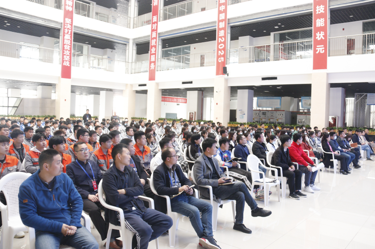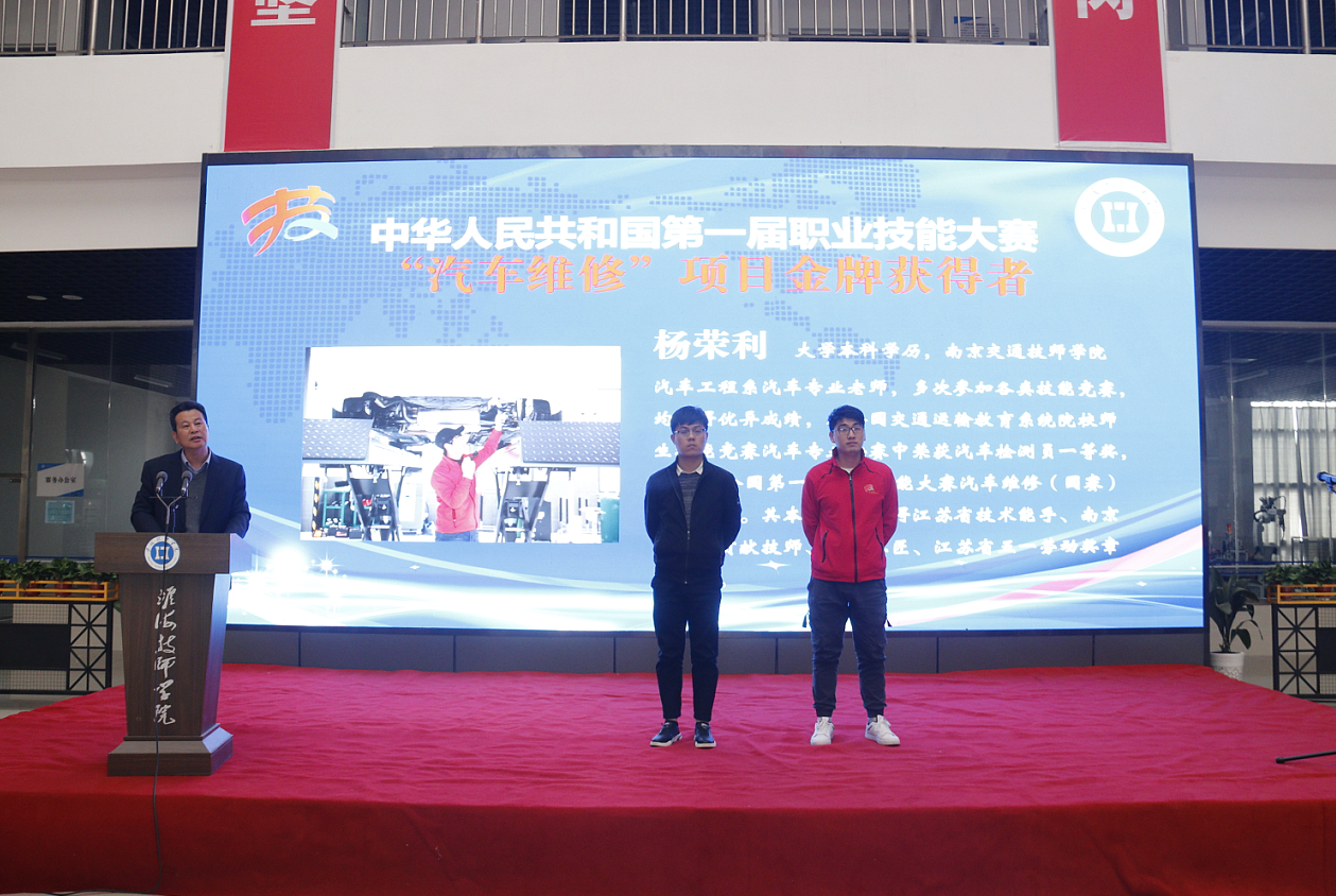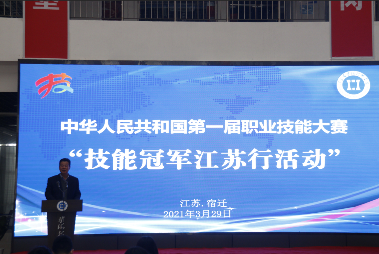 3月29日下午,由江苏省职业技能竞赛组委会办公室组织的中华人民共和国第一届职业技能大赛“技能冠军江苏行”宿迁报告会在我院举行。学院副院长朱宇亮,学院各系部负责人、师生代表、校企合作单位代表等300余人聆听报告会,现场感受“劳动光荣、技能宝贵、创造伟大”的社会氛围。市人社局职业能力建设处处长陈金全主持报告会。