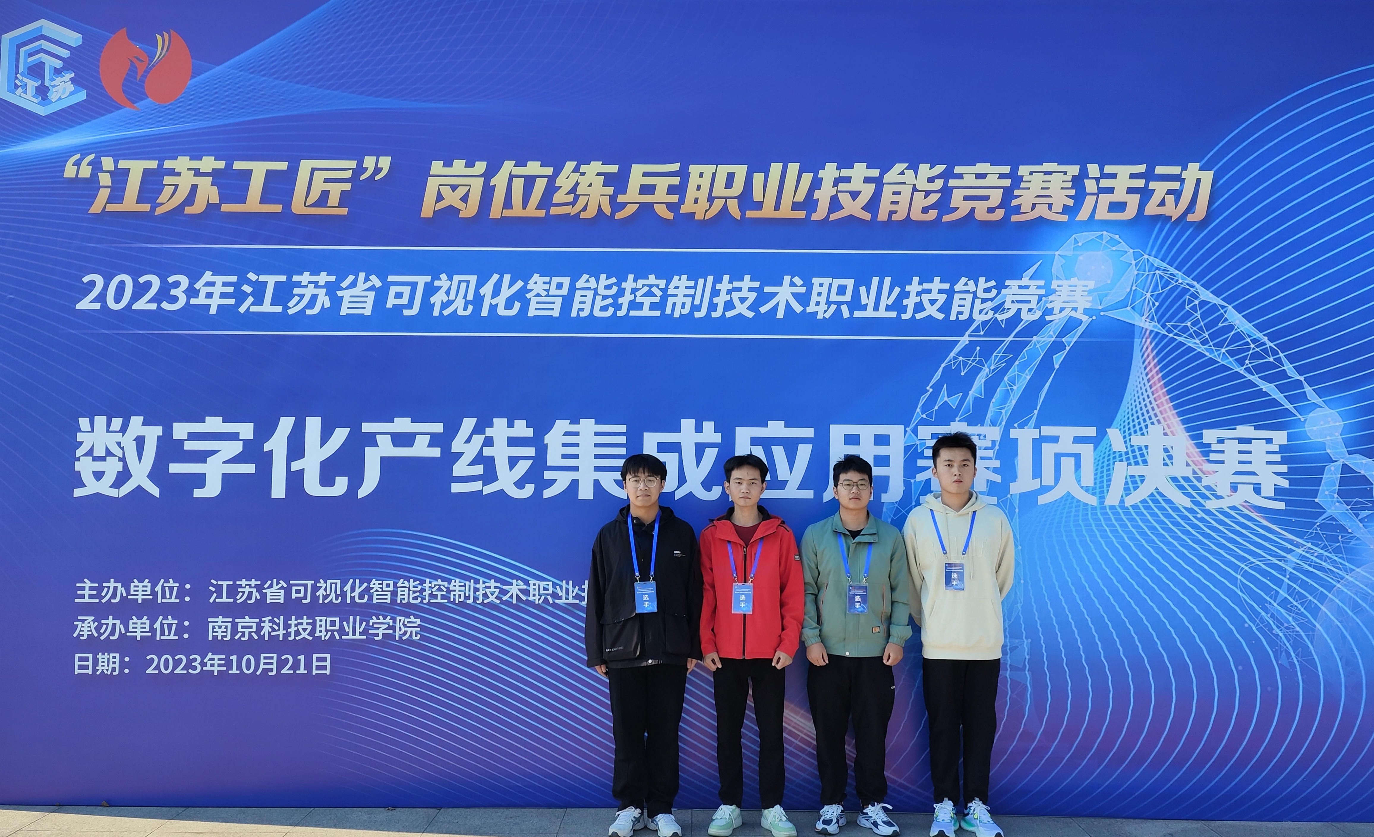 10月22日,从“江苏工匠”岗位练兵职业技能竞赛活动暨2023年江苏省可视化智能控制技术职业技能竞赛的赛场上再次传来喜讯,我院选派的8名选手参加“工业机器人系统数字化操作”和“数字化产线集成应用”两个赛项全部获奖,共获2金4银2铜的优异成绩。其中朱宁、尹永生荣获一等奖,曹野、朱宁、阚嘉蔚、王骞荣获二等奖,冯子波、陈松荣获三等奖,奖牌总数位居全省前列。