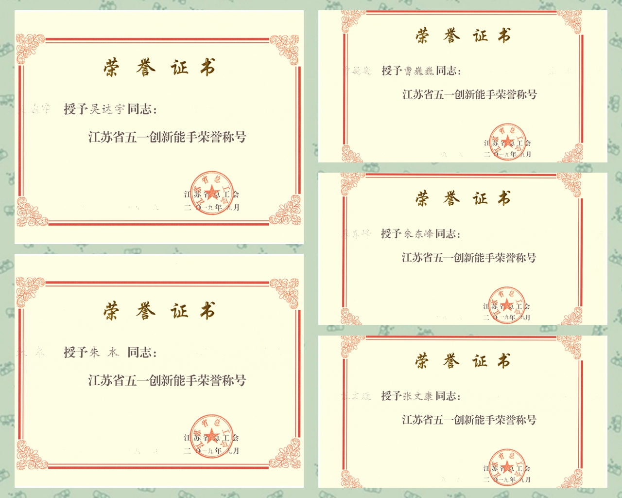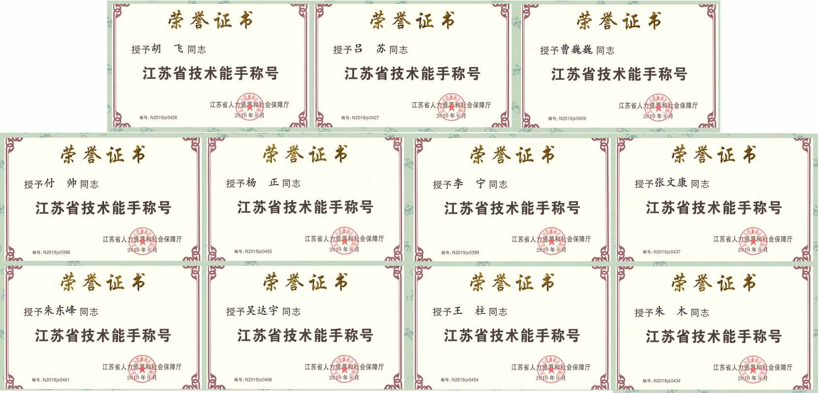 吴达宇、朱木、朱东峰、曹巍巍、张文康等5位教师因在第三届全国智能制造技术技能大赛江苏选拔赛中荣获二等奖,而被授予“江苏省五一创新能手”。付帅、胡飞、王柱、李宁、吕苏、杨正等11位选手因在第三届全国智能制造技术技能大赛江苏选拔赛中荣获一等奖,并代表江苏省参加第三届全国智能制造应用技术技能大赛决赛荣获二等奖,而被授予“江苏省技术能手”称号。