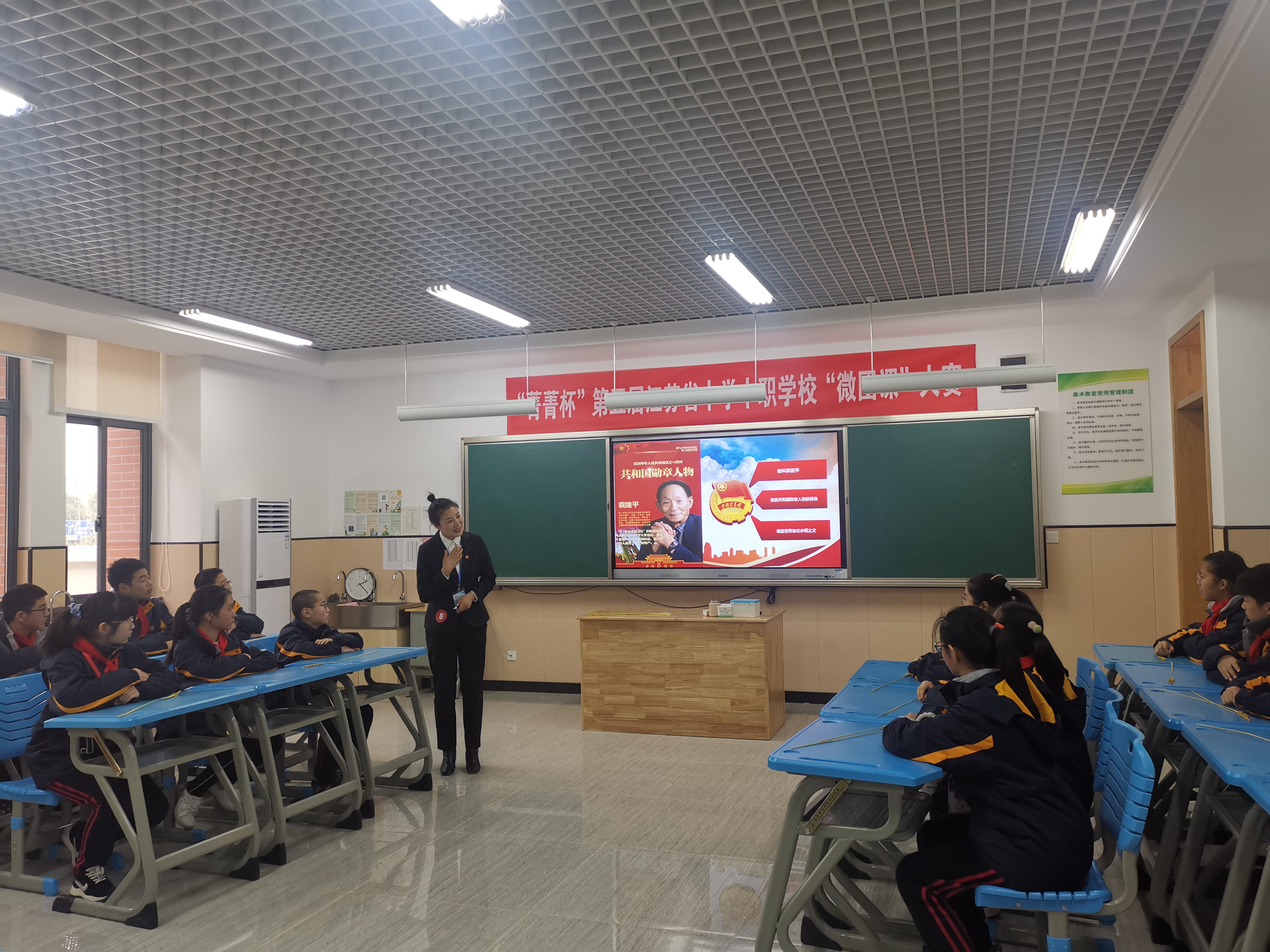 授课中,宁博老师通过一株杂交水稻作为主线,富有感染力的讲述了“杂交水稻之父”、“共和国勋章获得者”袁隆平的生平。通过袁老的生平经历,引申到我院技能青年王宇航、张恒瑞以工匠精神促进自我成长的真实故事。宁博老师在课上激励青年学子努力学好技能本领,掌握一技之长,用自己的技能报效国家,为民族复兴大业奉献青春力量。授课在激情洋溢的学院院歌《我们是未来的大国工匠》中完美收尾,获得现场同学和评委老师的一致好评。