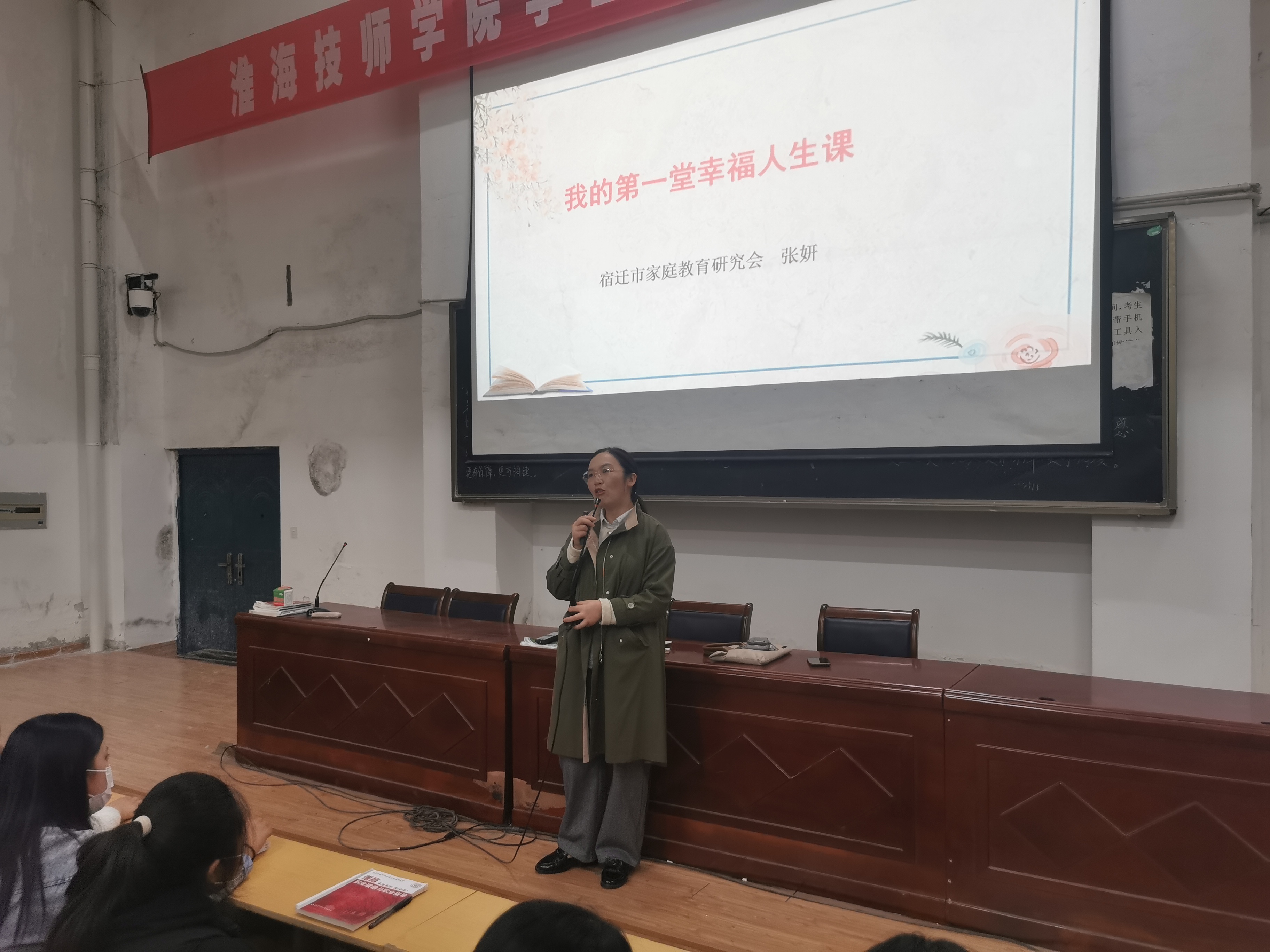 11月2日晚,我院在第一报告厅举办“我的第一堂幸福人生课”的心理健康专题讲座。特邀国家二级心理咨询师、宿迁市欣语未成年人成长指导中心张妍老师到校主讲。来自各系部的200多名学生代表参加了本次讲座。