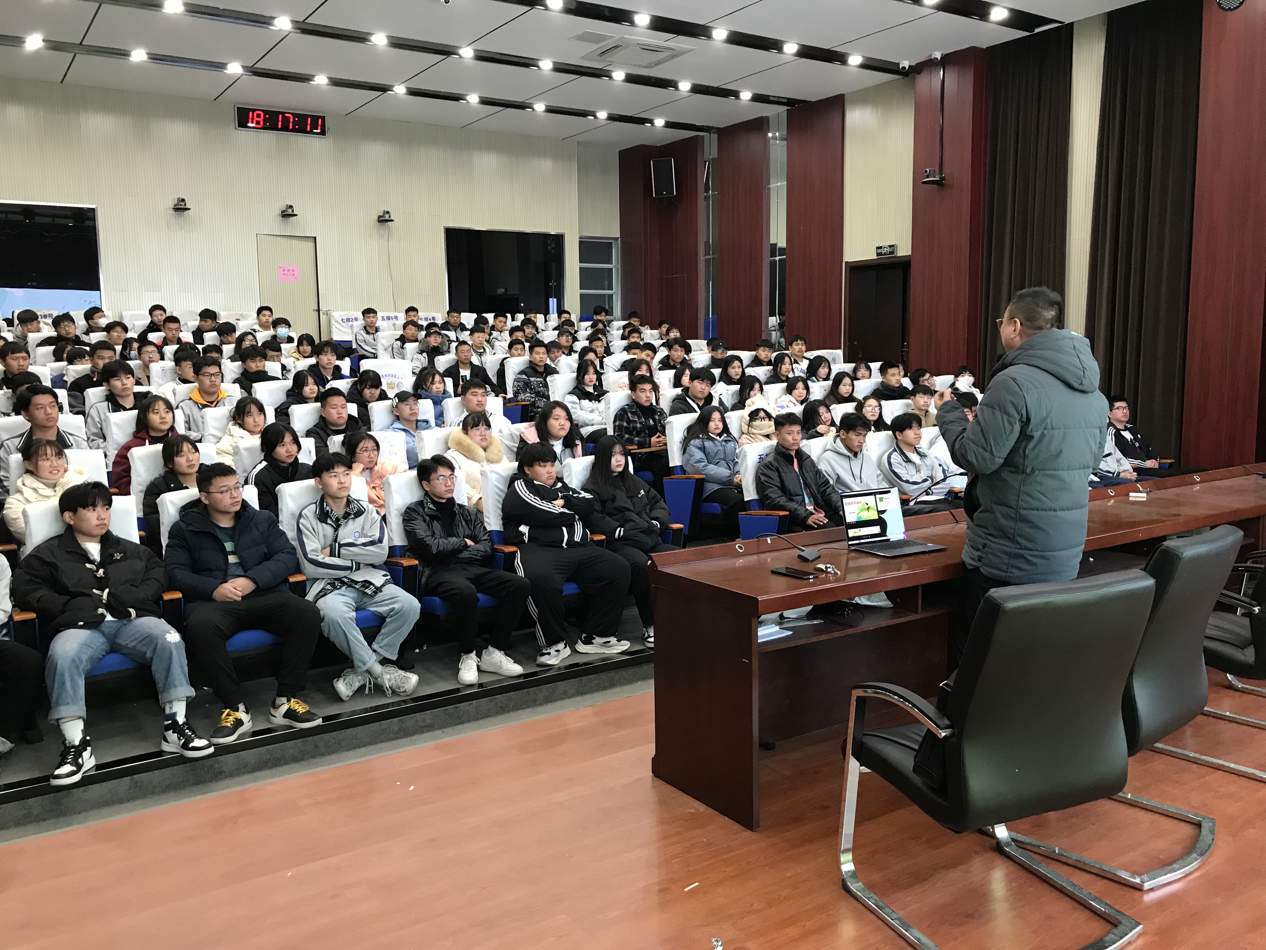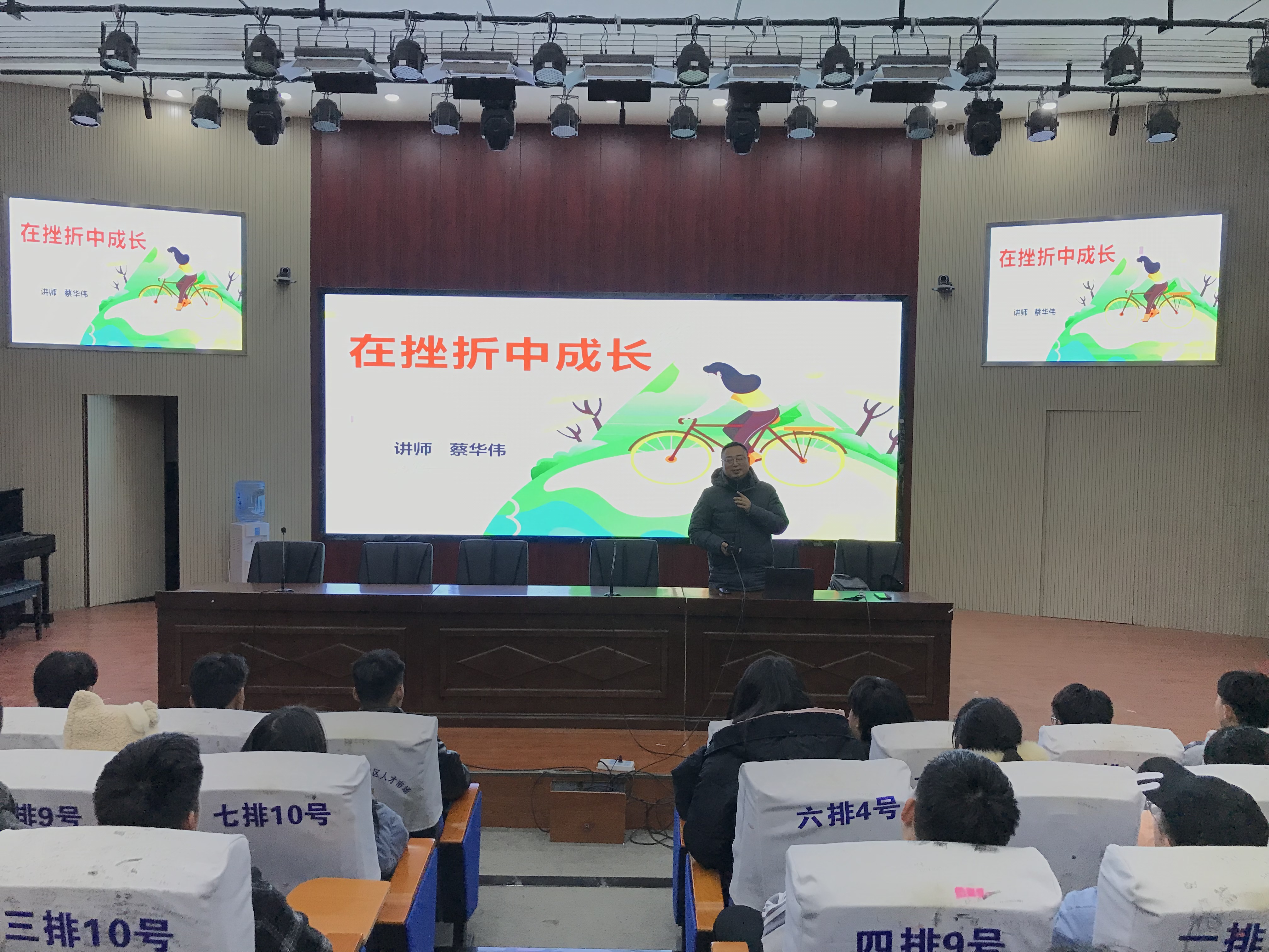 讲座中,蔡老师还通过实际案例告诉同学们失败并不可怕,面对挫折我们一定要有不抛弃、不放弃的精神,不为困难找理由,要为解决问题找办法,正视挫折、健康成长。