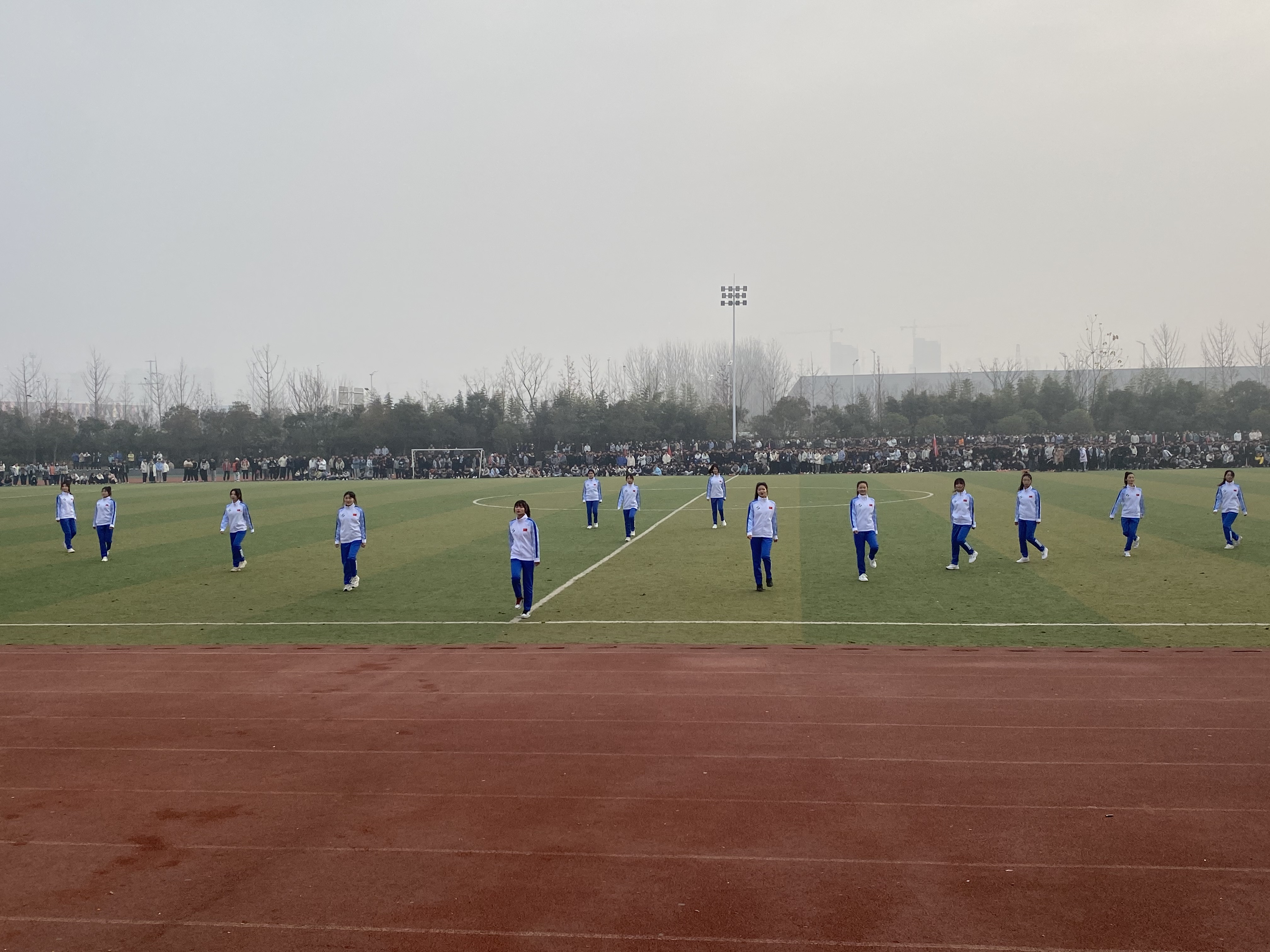 在裁判员代表、运动员代表先后宣誓后,徐守军宣布运动会比赛开始。在同学们热情的欢呼中,各项赛事正式拉开帷幕。