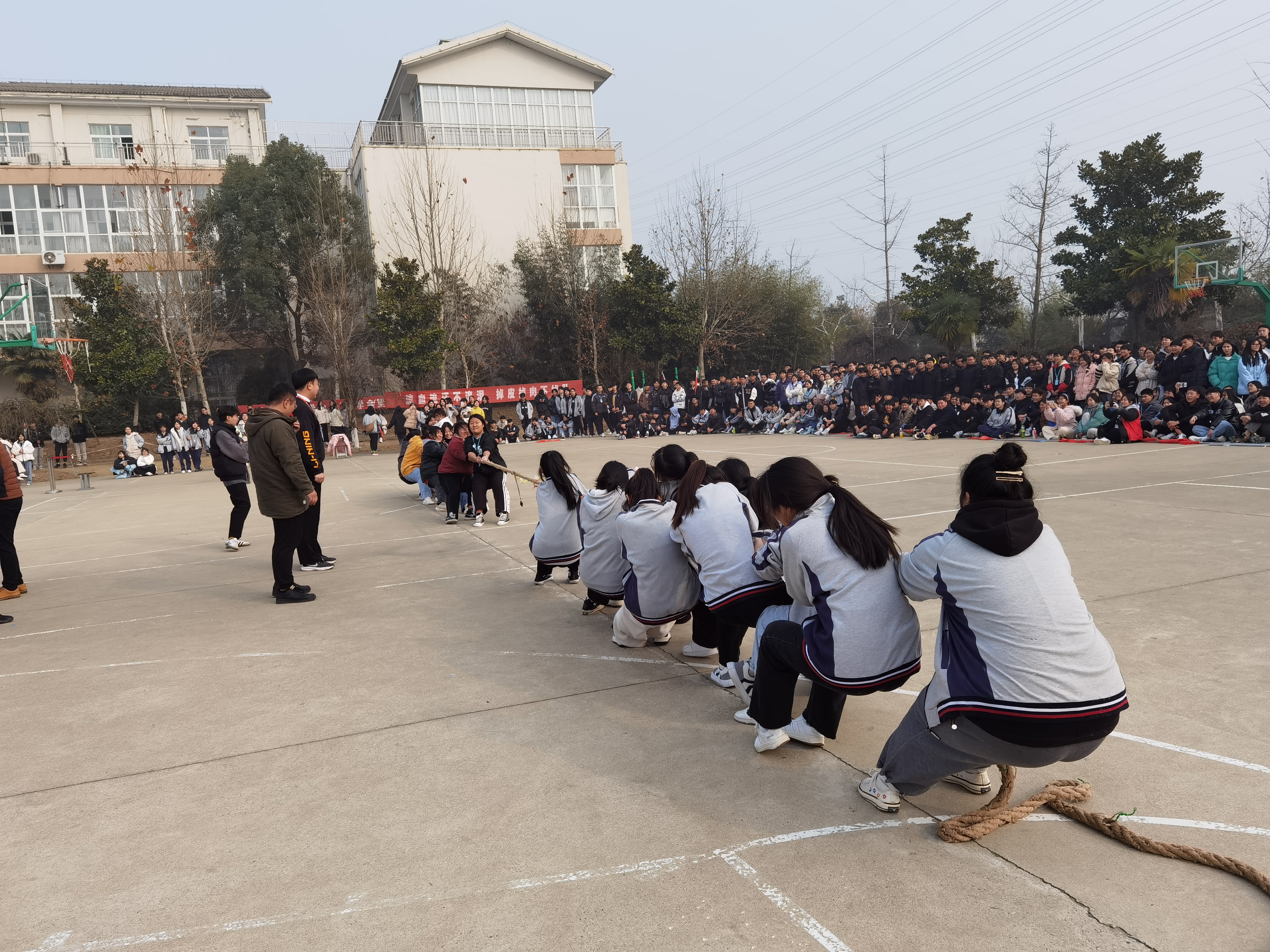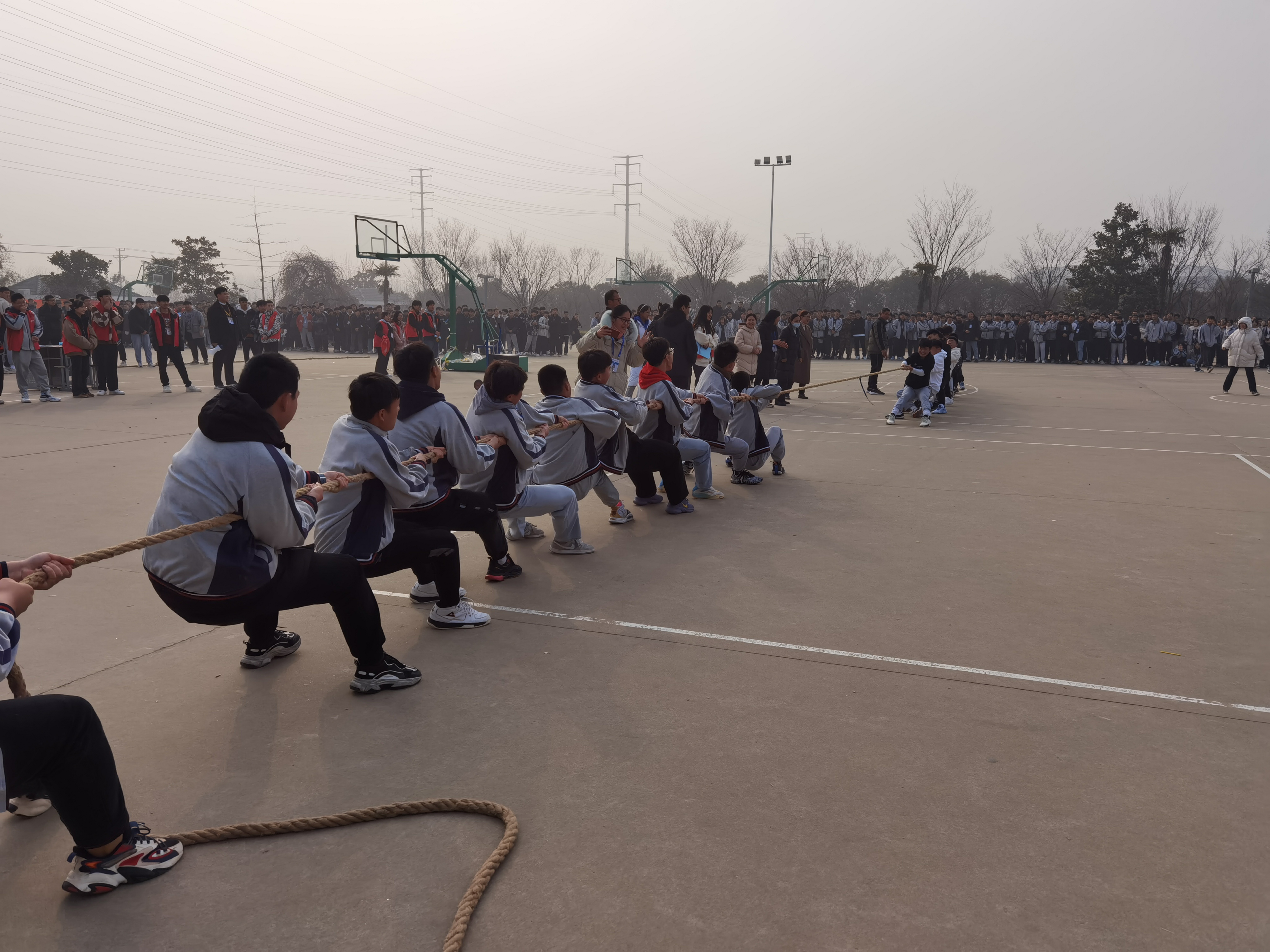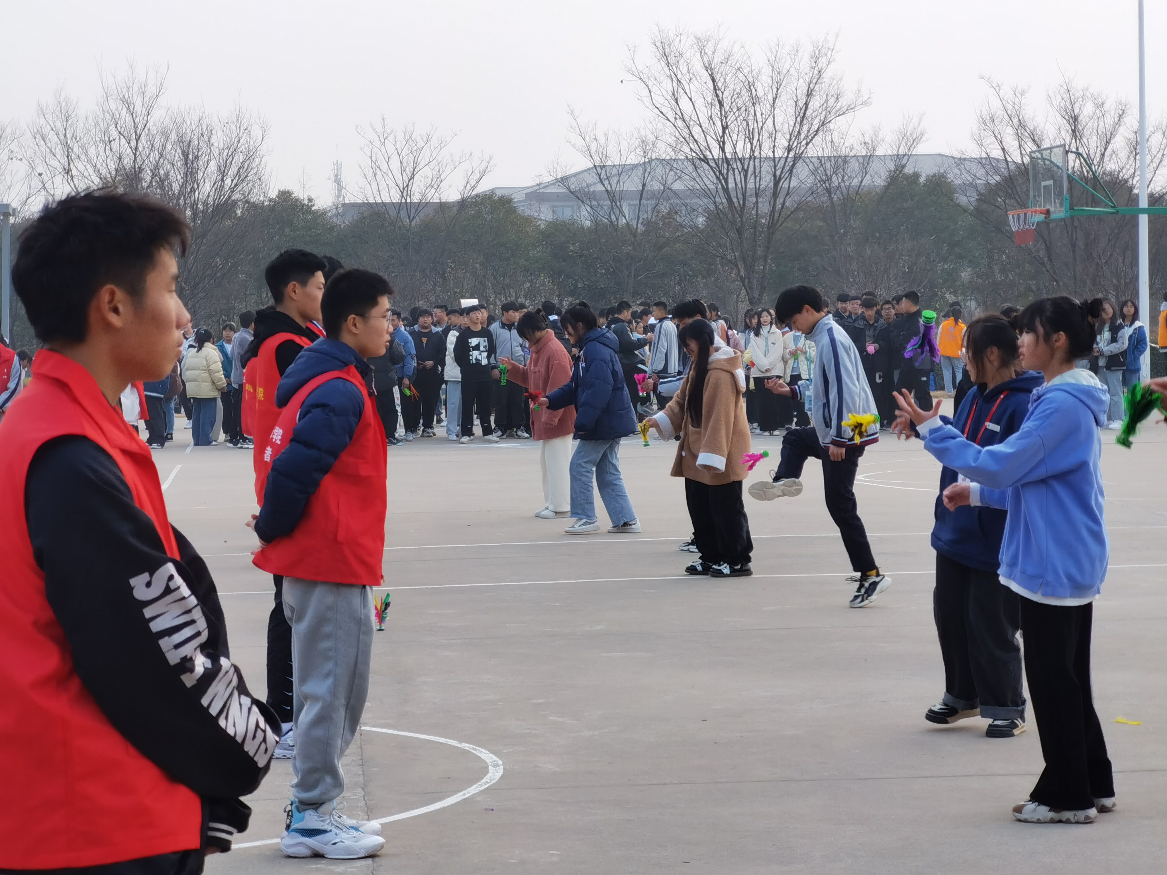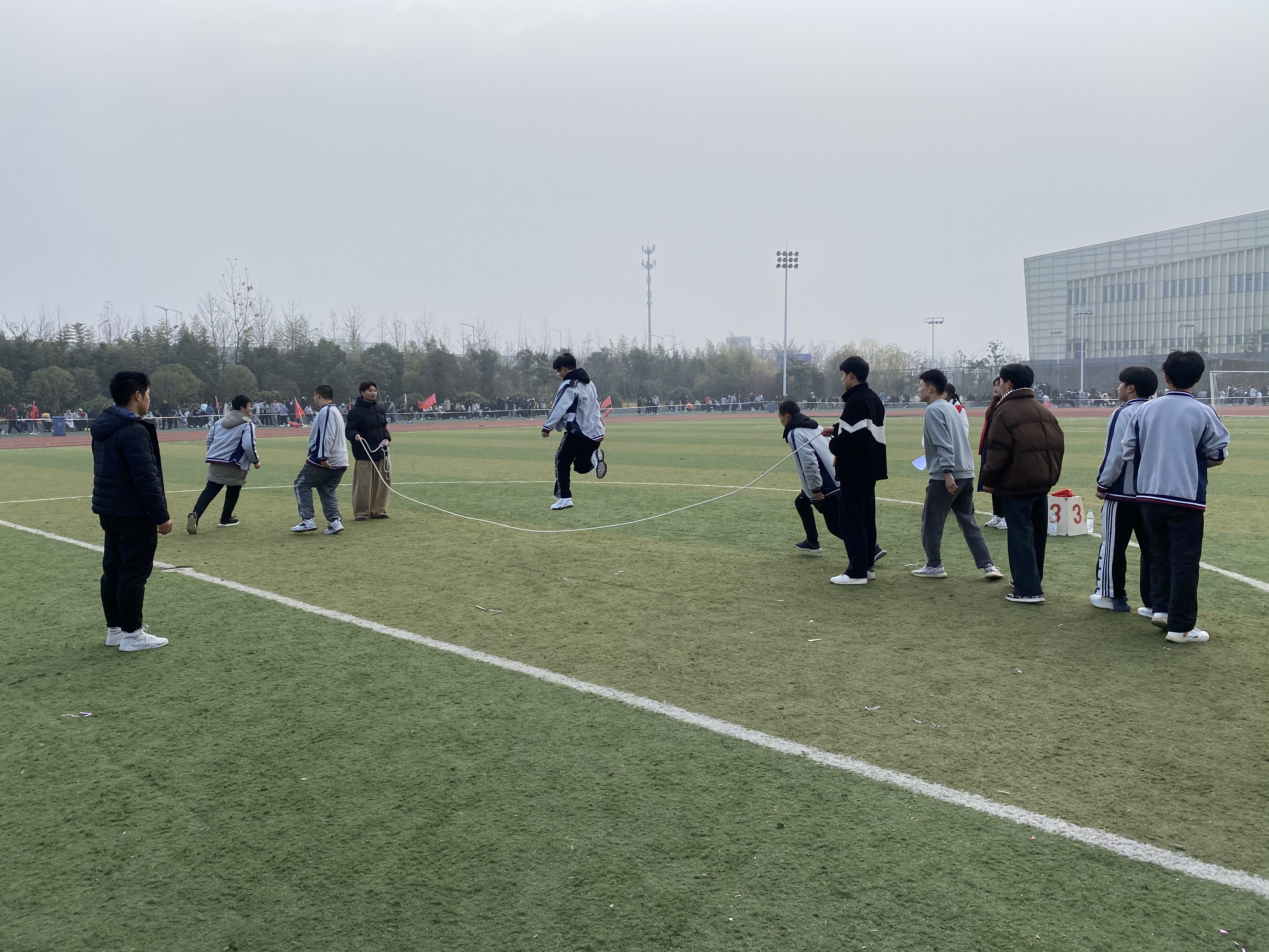 本次比赛项目包括2分钟集体跳绳、1分钟个人跳绳、1分钟单脚踢毽、1分钟双脚盘踢毽、拔河等,共有5000多名学生参加比赛。比赛中,每位参赛学生全身心投入、角逐竞技,不管是集体赛项还是个人赛项,个个都动力十足、奋力拼搏。没有参赛的同学们,则组成了啦啦队,在一旁呐喊助威。比赛现场气氛热烈、激情高涨。