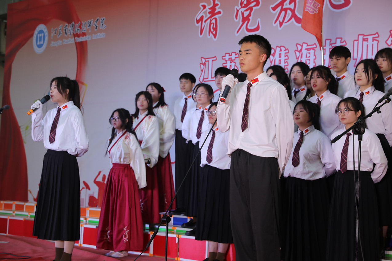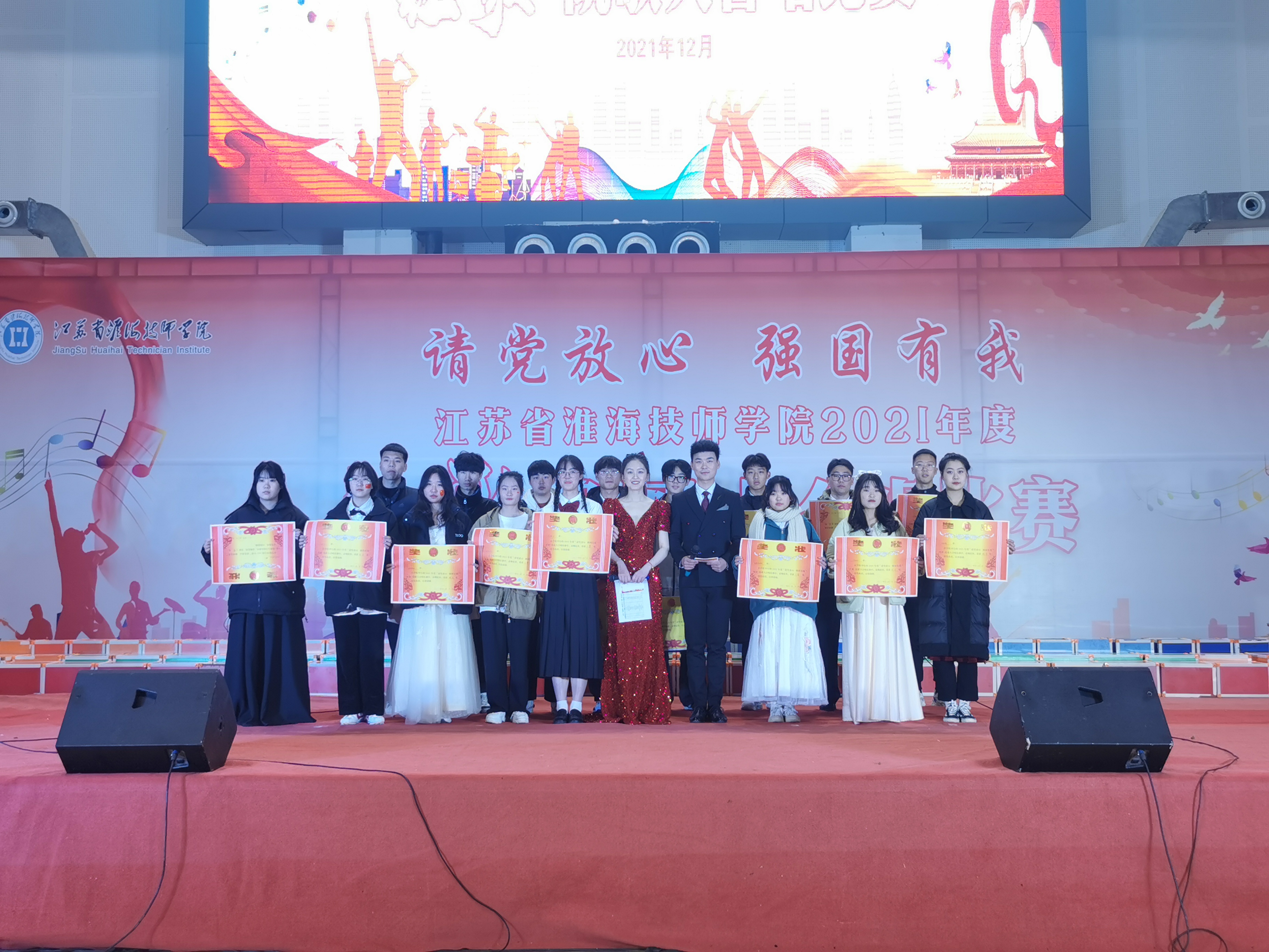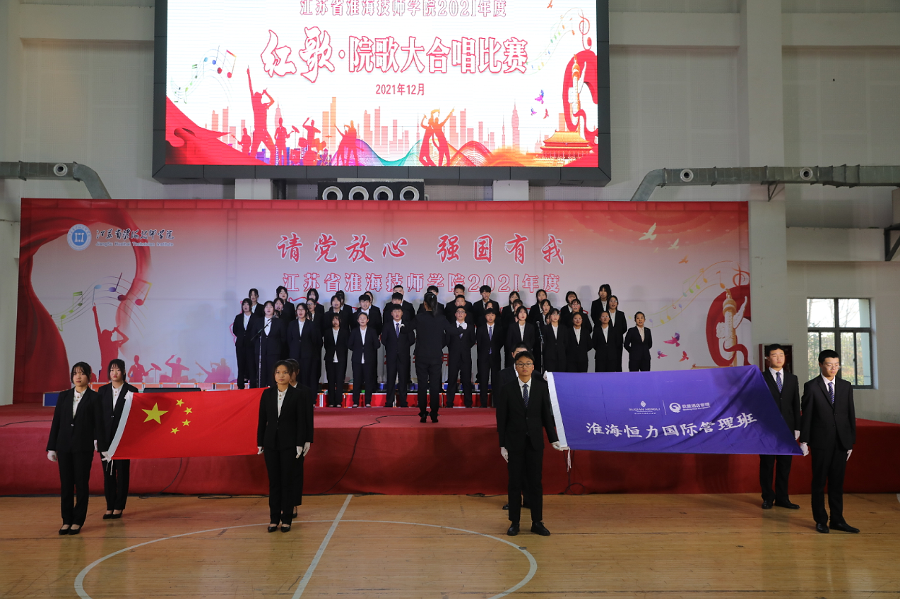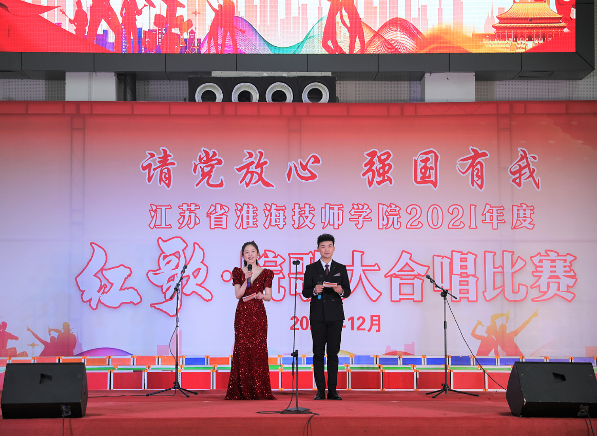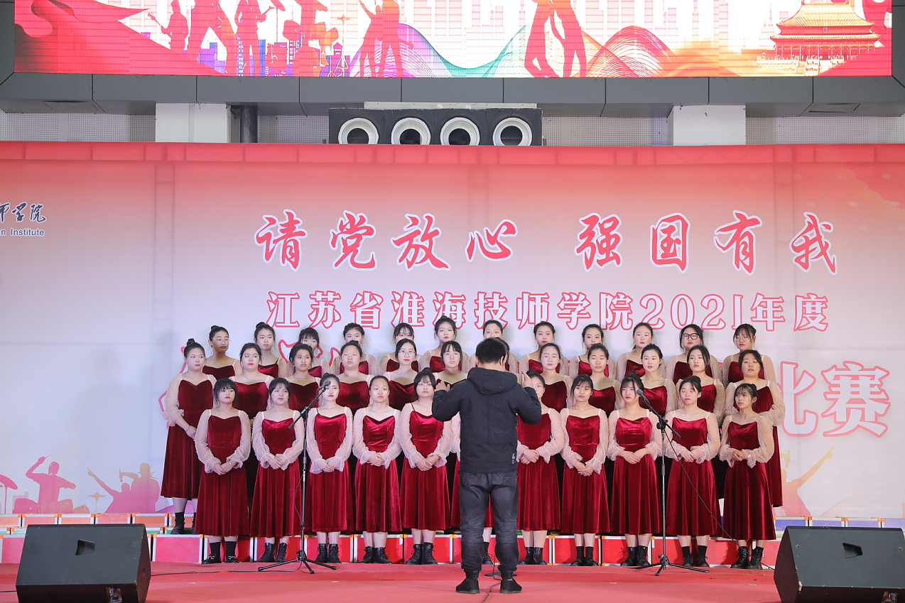 合唱比赛以“请党放心 强国有我”为主题,在寒冬之际,用属于淮海学子特有的方式表达爱国、爱校情怀。每支参赛队演唱两首曲目,其中院歌《我们是未来的大国工匠》为必唱曲目,红歌曲目为自选曲目。各参赛班级积极发挥创新思维,将专业展示、舞蹈表演、情景剧表演等完美的糅合在一起,把《红梅赞》、《万疆》、《保卫黄河》、《我的中国心》等一首首脍炙人口的歌曲演绎得淋漓尽致,慷慨激昂,比赛过程精彩不断,掌声阵阵,高潮迭起,全场师生深受感染。