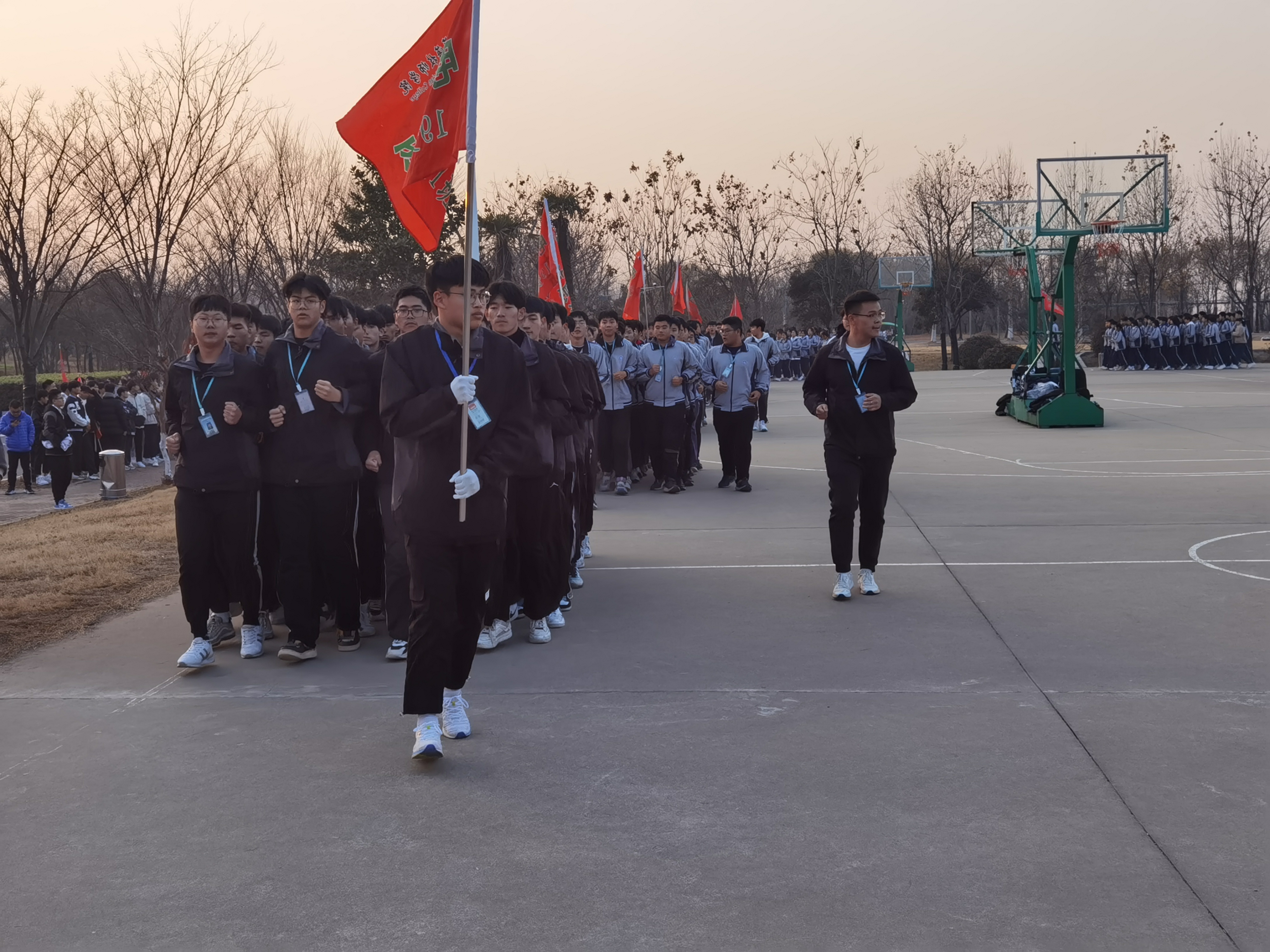 为进一步提高全院学生跑操整体水平,使跑操真正发挥增强学生体质、提高学习效率与班级凝聚力的作用,12月7日下午,我院南北校区同时以系部为单位举行了冬季跑操比赛。学院副院长李刚做动员讲话。