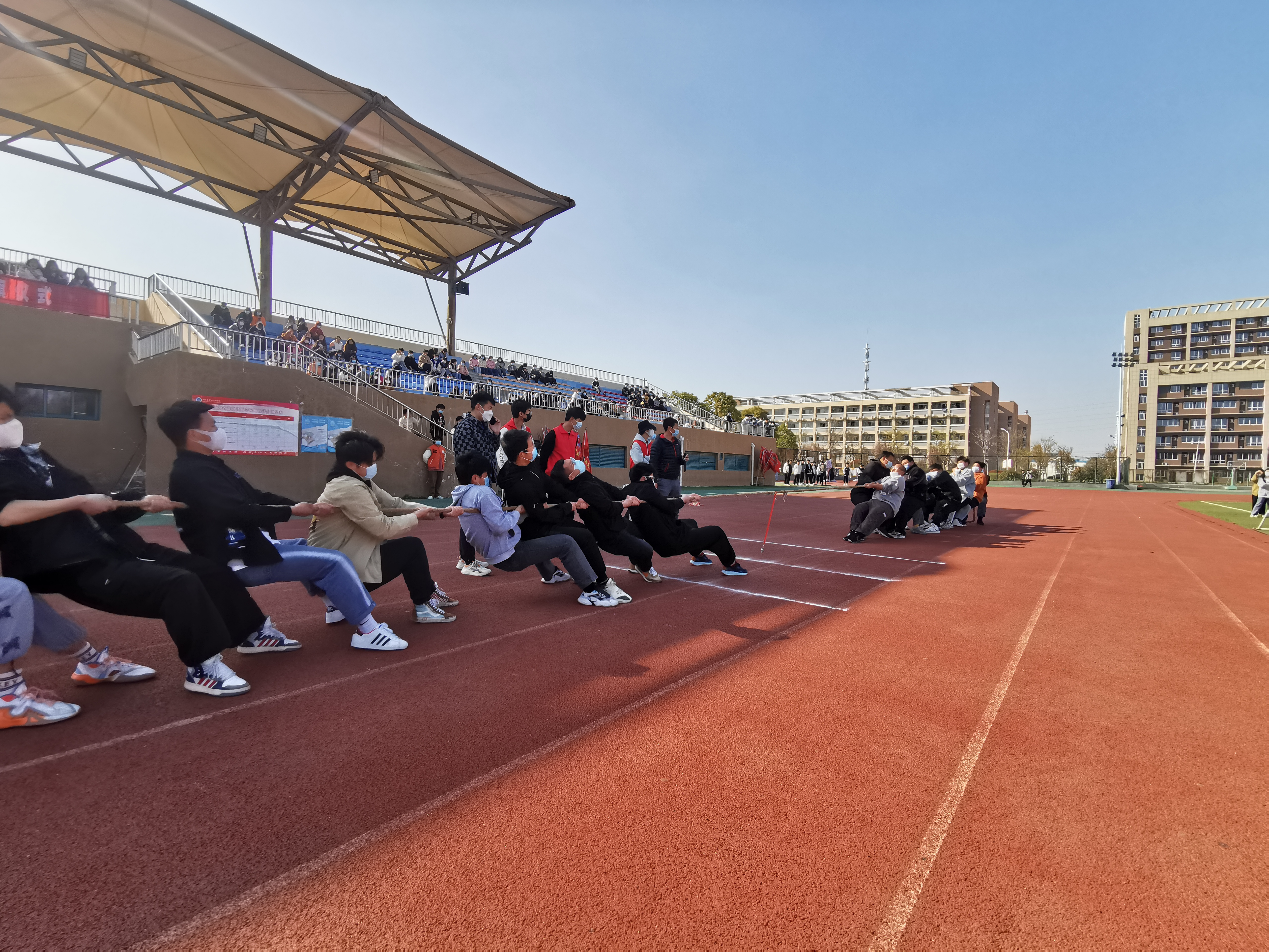 本次比赛以系部为单位,分男子组和女子组同步开展,同学们在做好个人防护的同时,踊跃报名、积极参与。为了保障比赛的安全进行,各系部学生会志愿者同学对比赛选手及观赛同学两码、核酸检测结果提前进行了检查核实。下午3点20分,结束了网课的同学们纷纷走出宿舍,走进运动场。伴随着春日的阳光,激烈的拔河比赛正式拉开帷幕。参赛选手铆足精神、拼尽全力,看台上加油的同学也用此起彼伏的呐喊、口号声为各自系部选手加油助威,现场气氛热烈而有序。