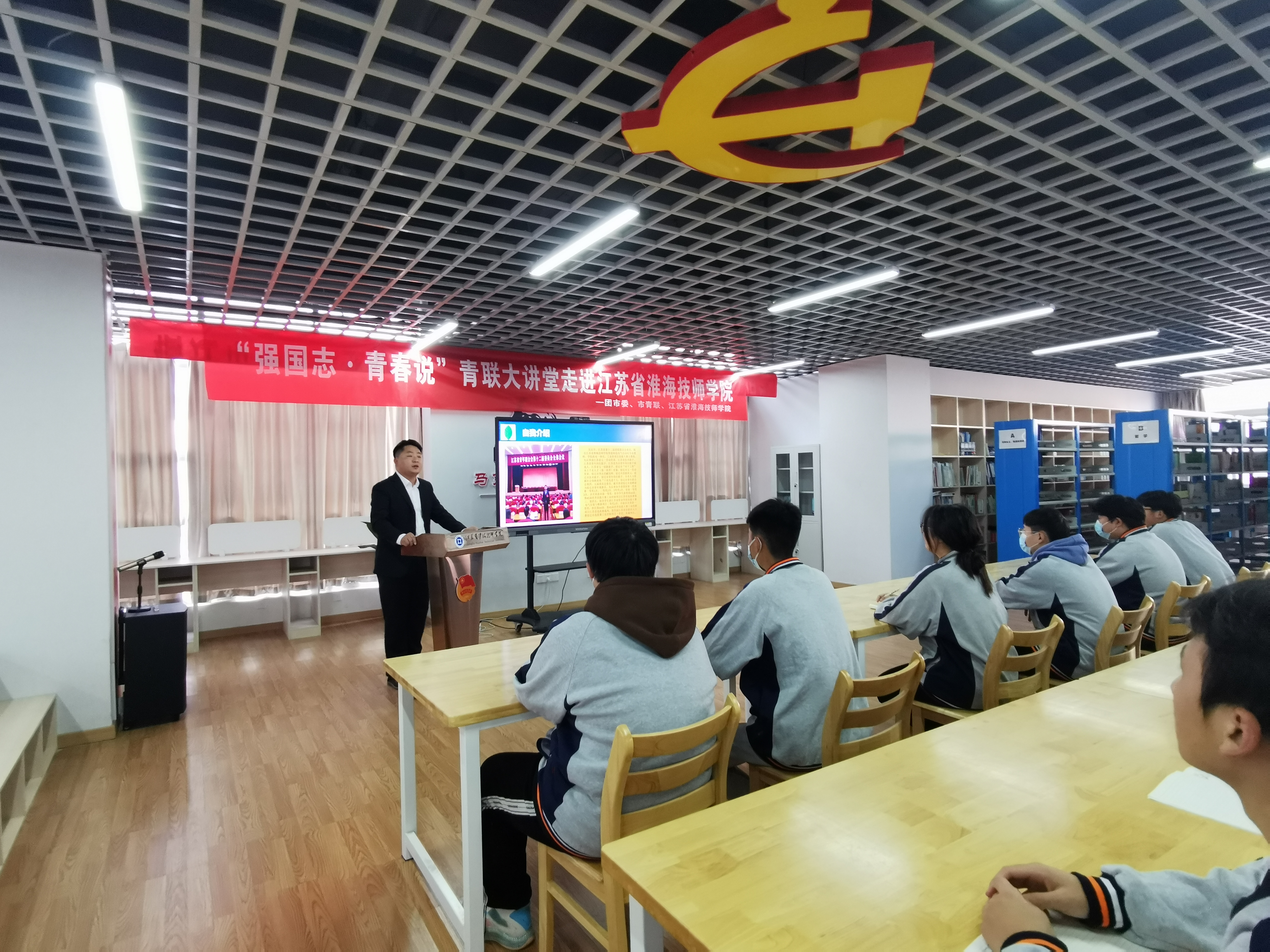 10月31日下午,由共青团宿迁市委指导,宿迁市青年联合会主办的“强国志 青春说”青联大讲堂走进我院,江苏省青联委员、江苏省五一劳动奖章获得者、江苏省技术能手、学院智能制造电气自动化专业教师吴达宇为同学们开讲。来自各系部专业的40余名青年学生代表现场聆听报告。