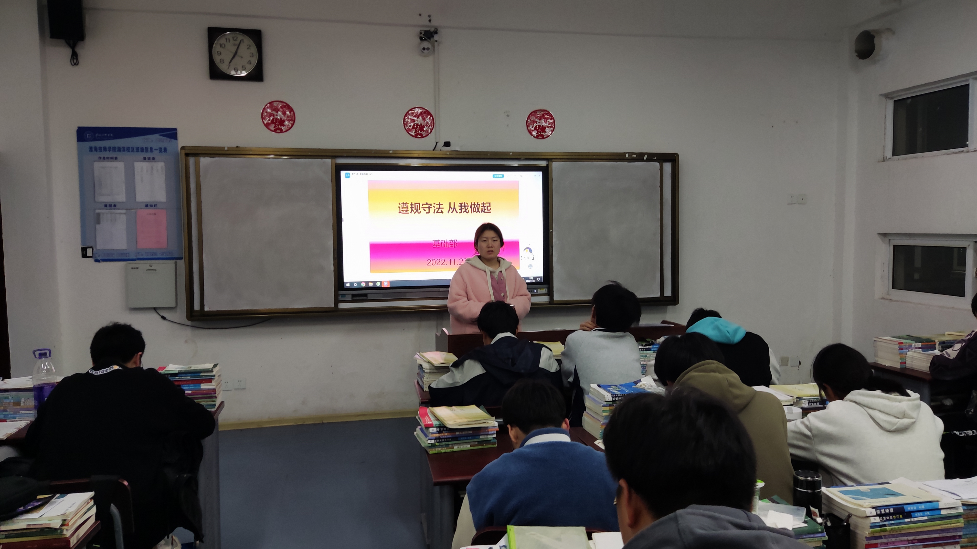 为进一步增强学生的法律意识和责任担当,11月27日晚,我院组织各班开展了“遵规守法,从我做起”主题班会课活动。