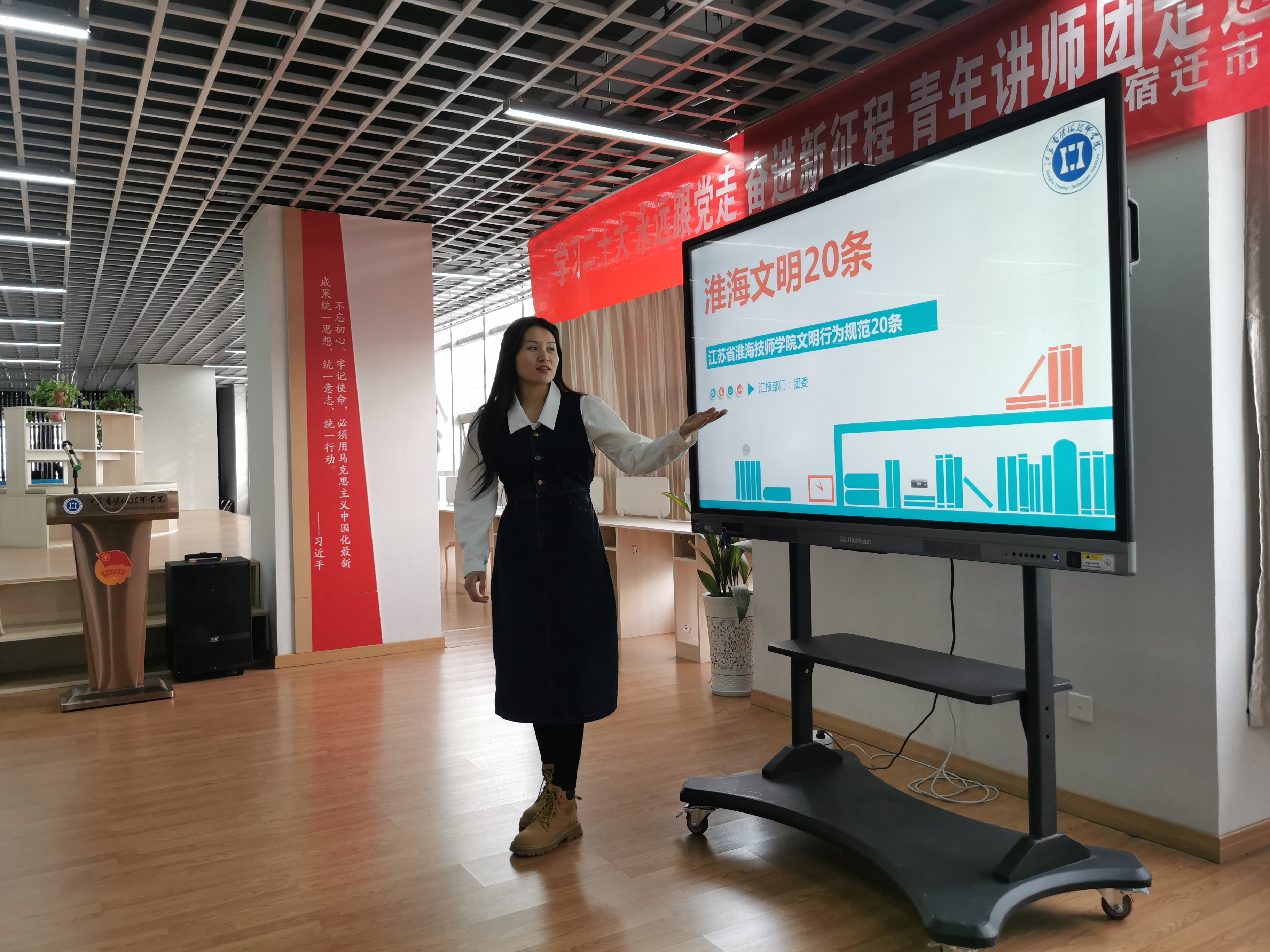 为营造文明和谐的校园氛围,在全院范围内进一步宣传普及“淮海文明20条”,引导更多同学践行“淮海文明20条”,养成良好文明行为习惯,成就更加美好的人生。2月21日,马克思主义学院举行“淮海文明20条”首场示范宣讲活动。来自各系部的40余名学生代表以及马克思主义学院全体成员现场聆听宣讲。