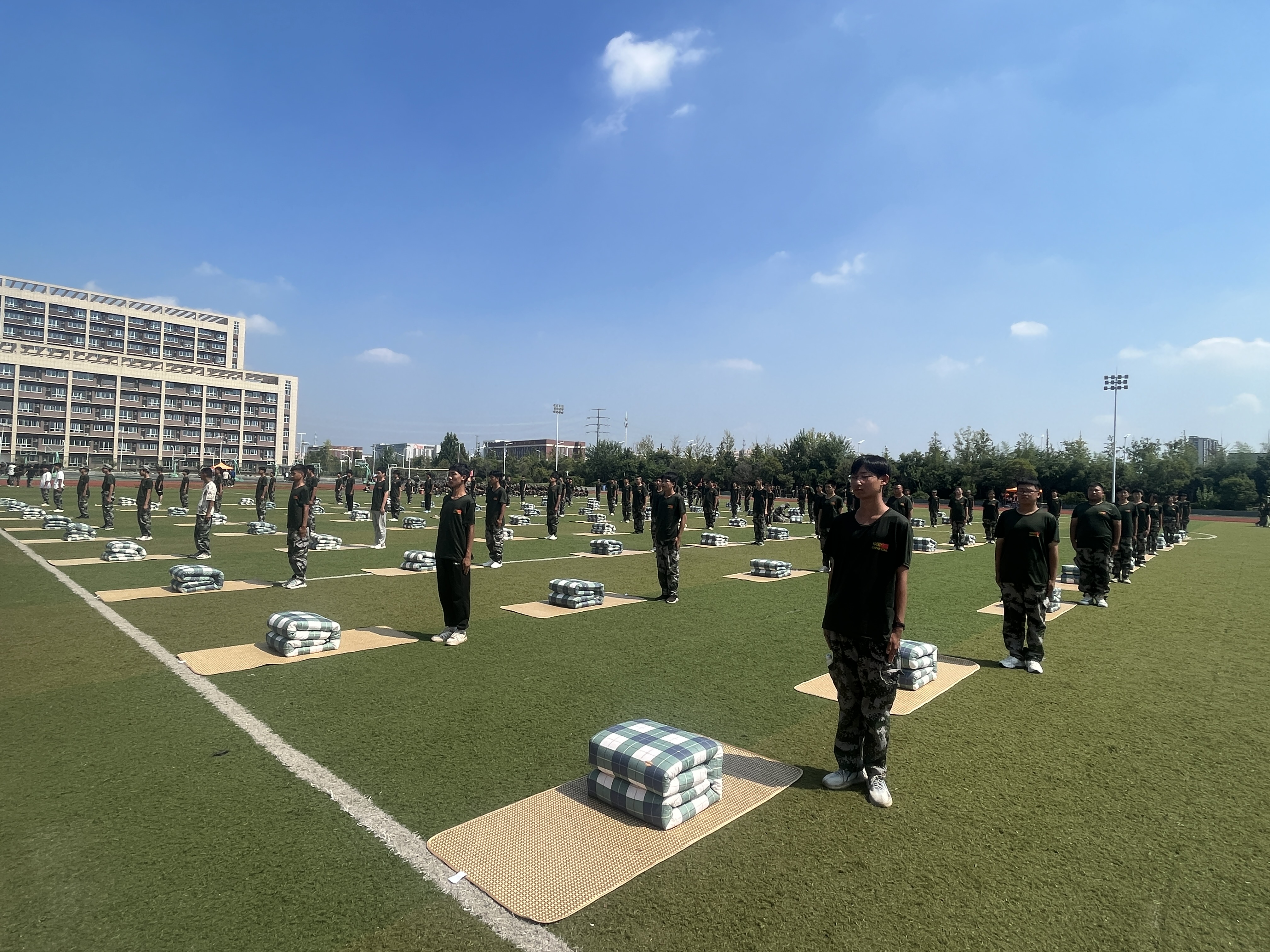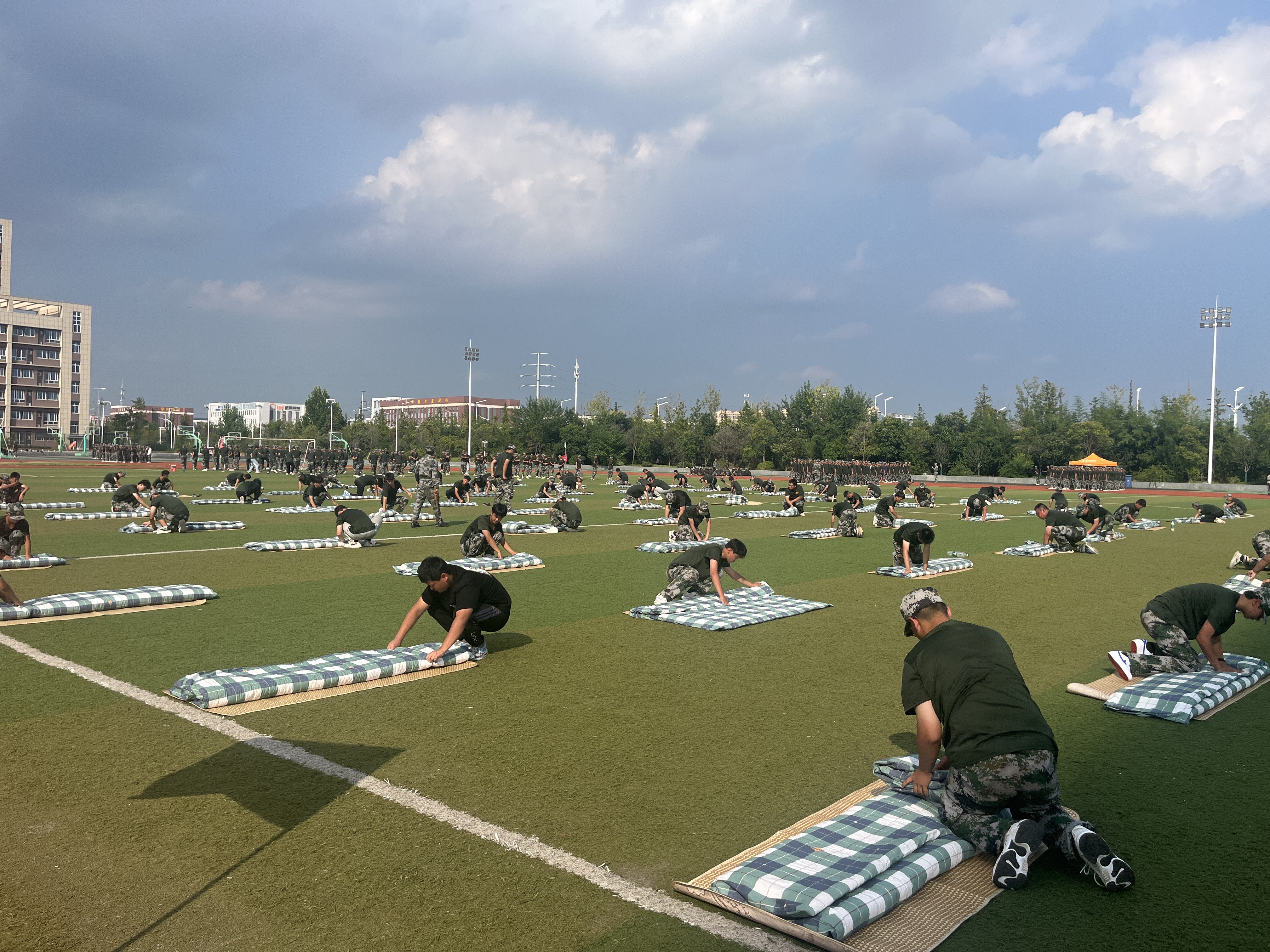 活动开始前,2023级军训总教官周浩宣布了比赛规则,同学们在5分钟内完成叠被,评委将从形、面、线等维度进行考察评判。赛前,各选手来到比赛场地,认真练习,再次回顾技巧要点。