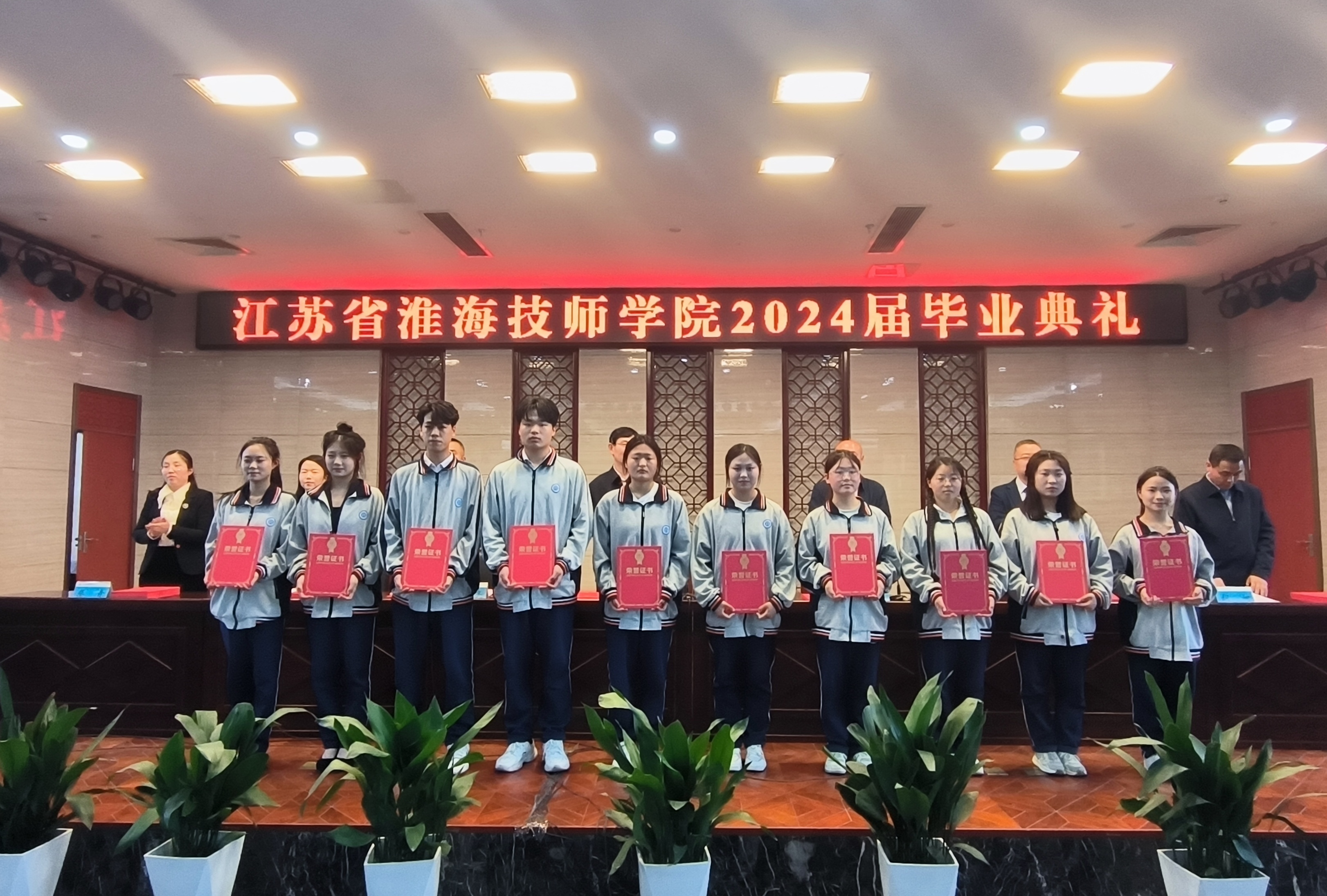 期间,副院长王坤宣读了《关于表彰江苏省淮海技师学院2024届优秀毕业生的决定》,与会领导为优秀毕业生颁发荣誉证书。毕业生代表崔雨婷同学分享了在淮海五年来的成长与收获,向母校和师长表达感恩的同时,也表示将秉承“德艺周厚”的校训,争做有理想、敢担当、能吃苦、肯奋斗的新时代好青年。在校生代表晁祎函同学回顾了在校期间学长学姐们给予的帮助,并代表全体在校生祝福他们毕业快乐,一帆风顺。