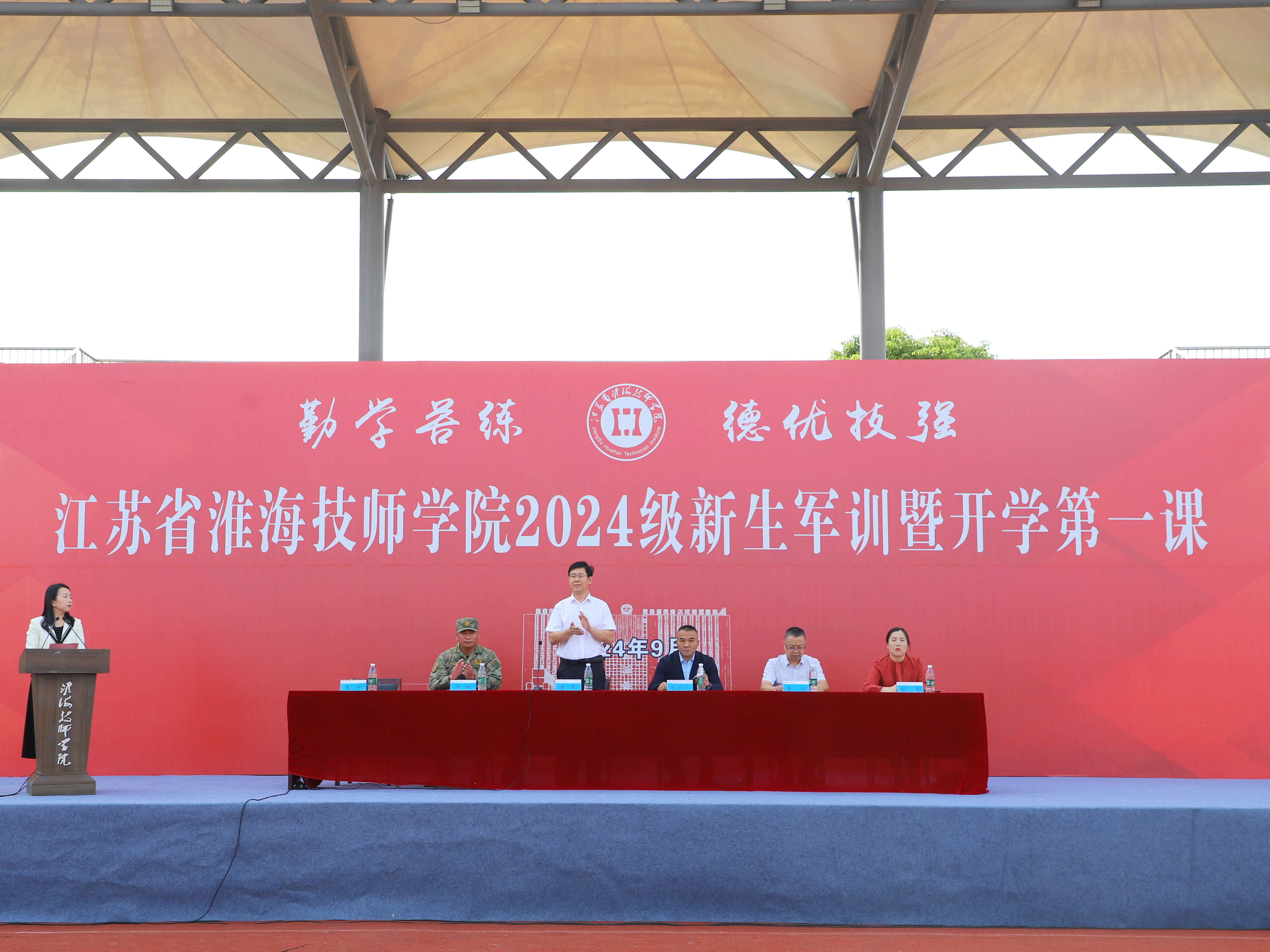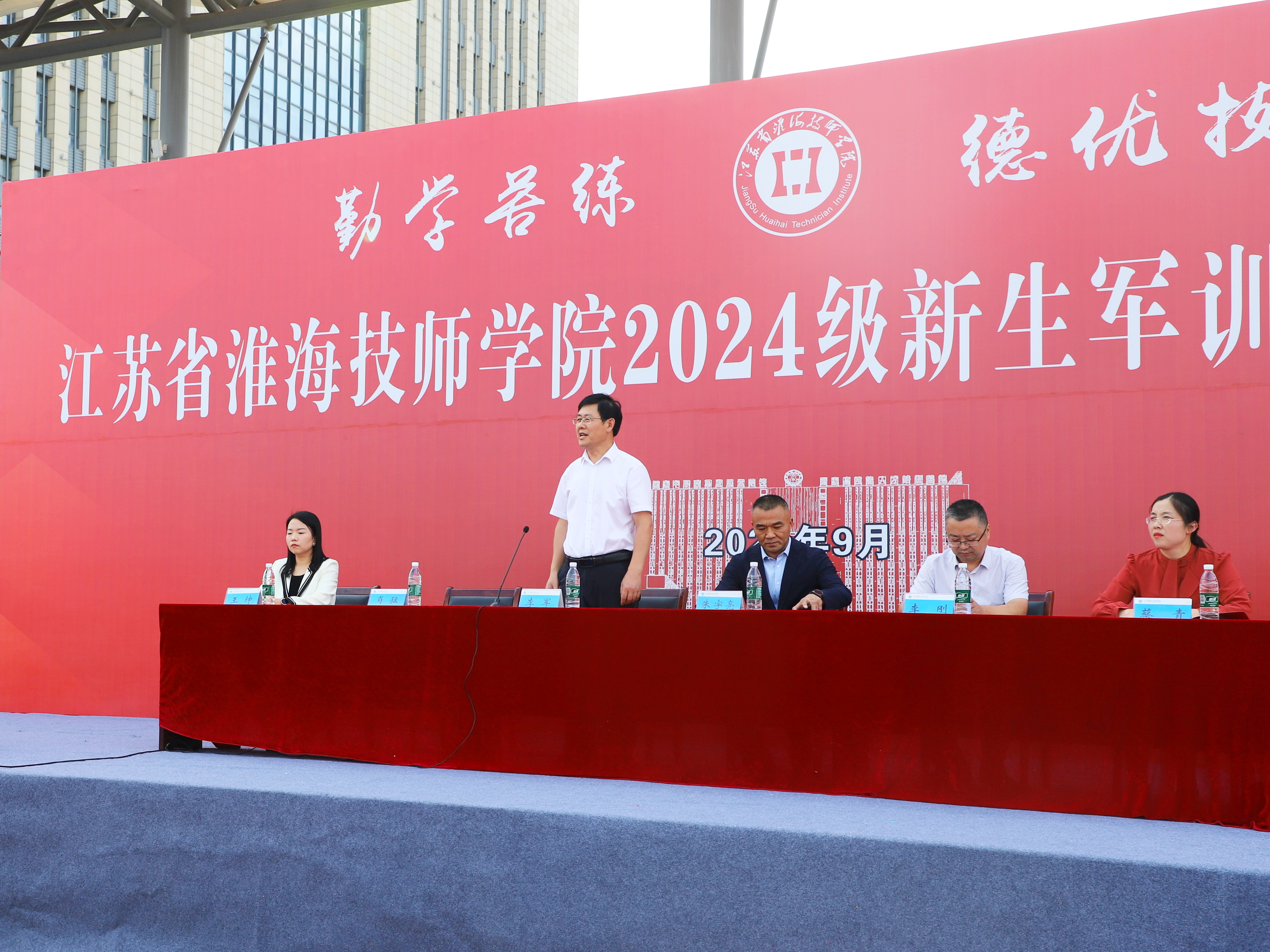 朱宇亮代表学院向2024级全体新生表示热烈欢迎,向即将承担新生军训工作的全体教官们表示崇高的敬意和衷心的感谢。他以“传承工匠文化,争做技能先锋”为主题进行授课,深入阐述了技工教育的发展历程及重要地位,详细解读了工匠文化的深刻内涵和重要价值,激发起同学们技能提升的热情,鼓励大家树立“技能成才”的目标,并将个人奋斗的“小目标”融入党和国家事业的“大蓝图”之中。他提出三点希望:希望大家做一个有品德的青年。在淮海的学习生活中,练就高超技艺,养成高尚品德;希望大家做一个有活力的青年。始终保持对生活的热爱与好奇心,不断探索未知领域,培养健康的生活方式,保持良好的身体状态;希望大家做一个珍爱生命的青年,养成良好的安全意识,远离危险行为。同时要关注心理健康,学会调节自我情绪,保护好自己的身体安全和心理安全。