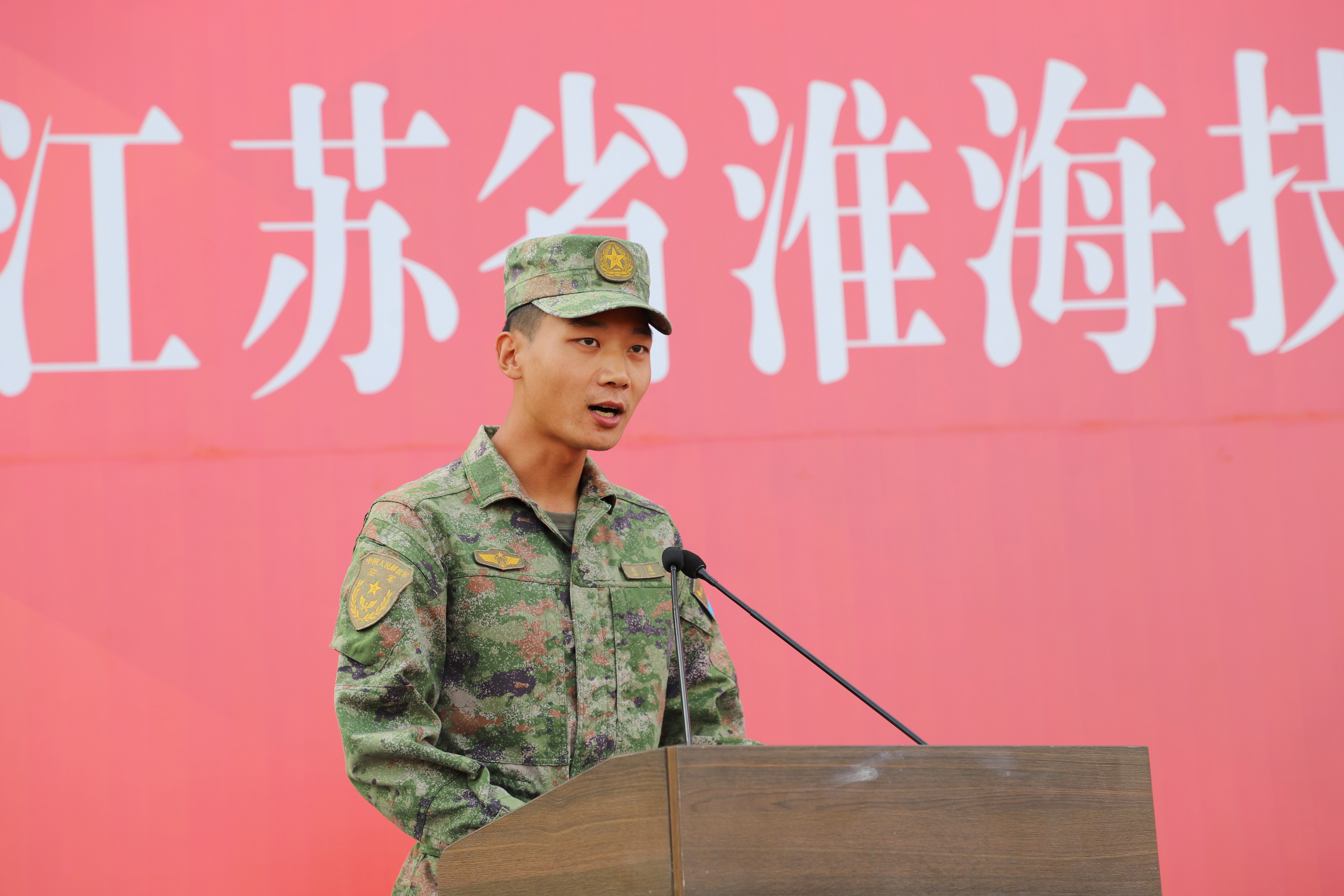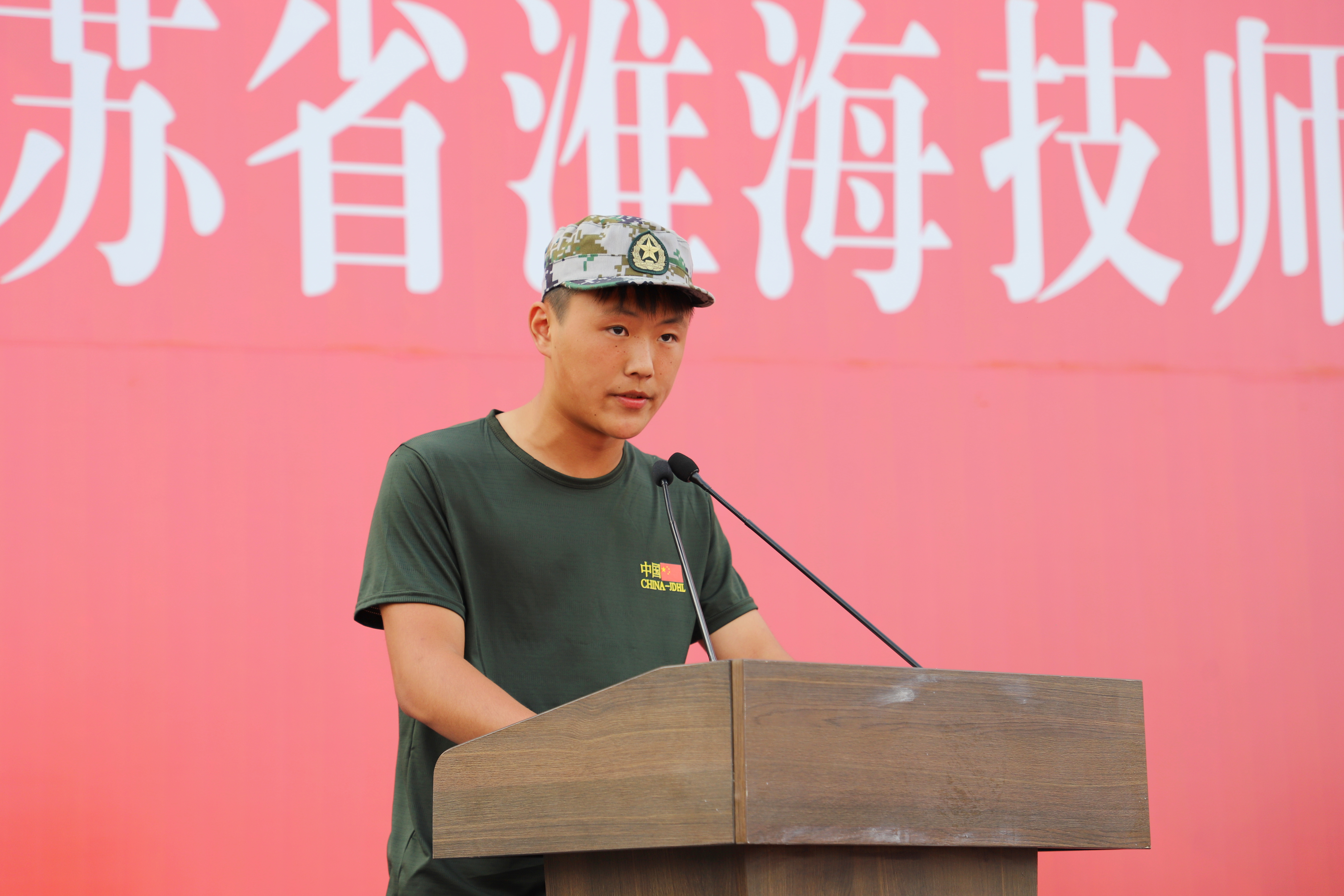 智能制造系2024级新生徐行贺表达了全体同学对军训的期待和决心,并郑重承诺:严守纪律,规范言行举止,服从教官管理,自觉接受考验,保证以优异成绩完成军训任务。