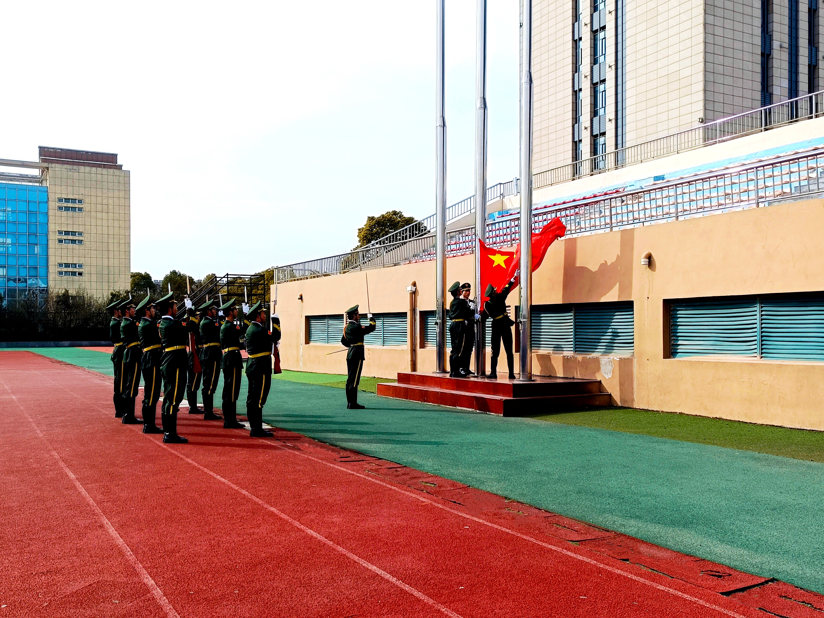 2月17日,我院以“校园安全在我心”为主题组织新学期第一次升旗仪式,倡议全院师生树立校园安全意识、养成安全行为习惯、遵守安全规章制度,共同营造健康和谐、安全有序的校园环境。在庄严的国旗下,全体学生肃立,共同宣誓:时刻铭记校园安全的重要性,从我做起,从小事做起,共同维护校园和谐稳定。誓言铿锵有力,彰显了同学们对校园安全的坚定承诺。