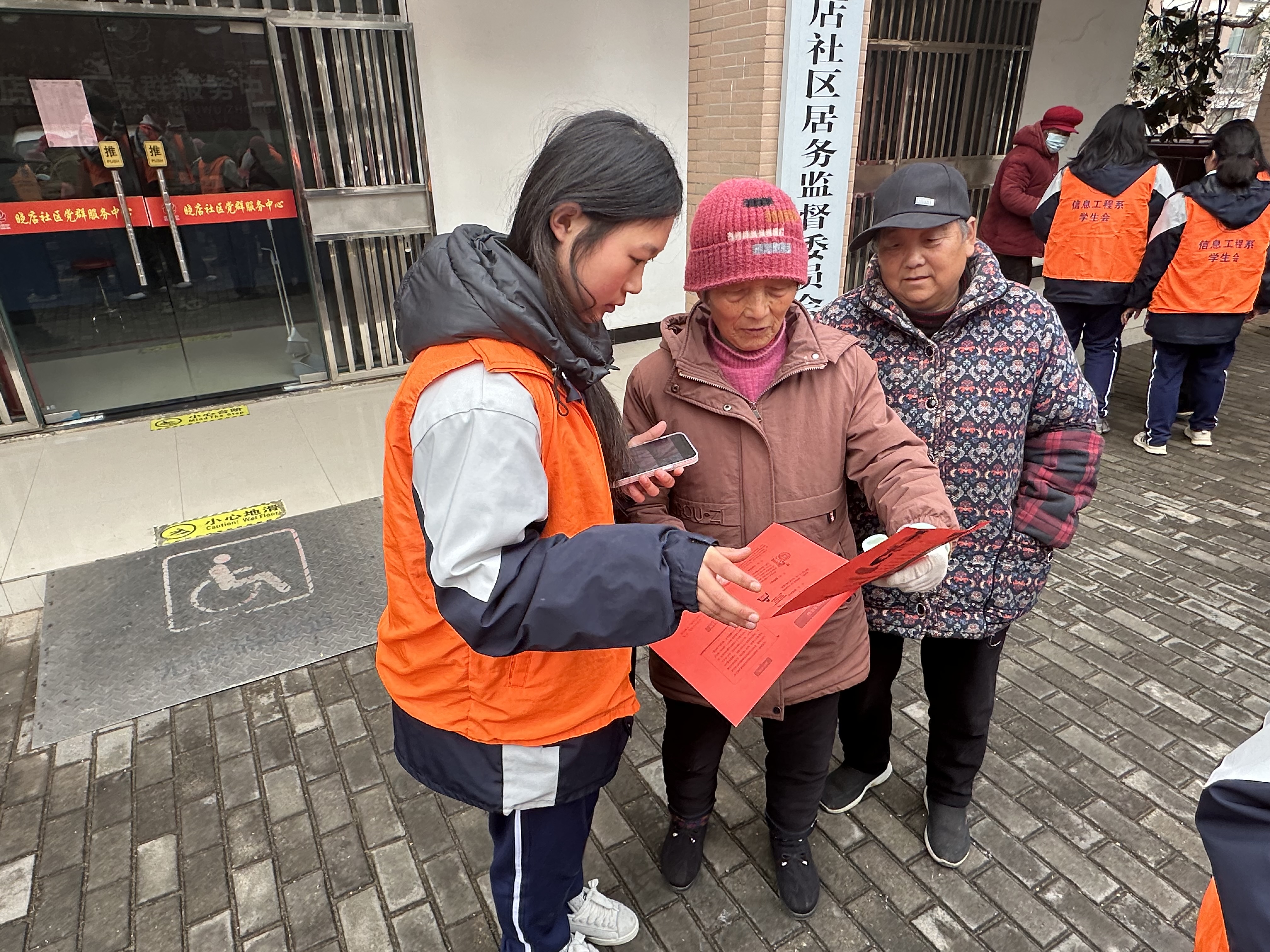 在晓店社区,信息工程系学生志愿者为老年人提供了智能手机使用培训和反诈宣传服务。他们耐心地教老人们如何操作手机、下载和使用各类应用程序,还为他们安装了反诈软件,提高了老人们的网络安全意识。同时,学生们还通过发放宣传资料、现场讲解等方式,向老人们普及了防骗知识和技巧,帮助他们识别并防范各种电信网络诈骗。这一活动不仅增强了老人们的科技素养和防骗能力,也让他们感受到了社会的关爱和尊重。