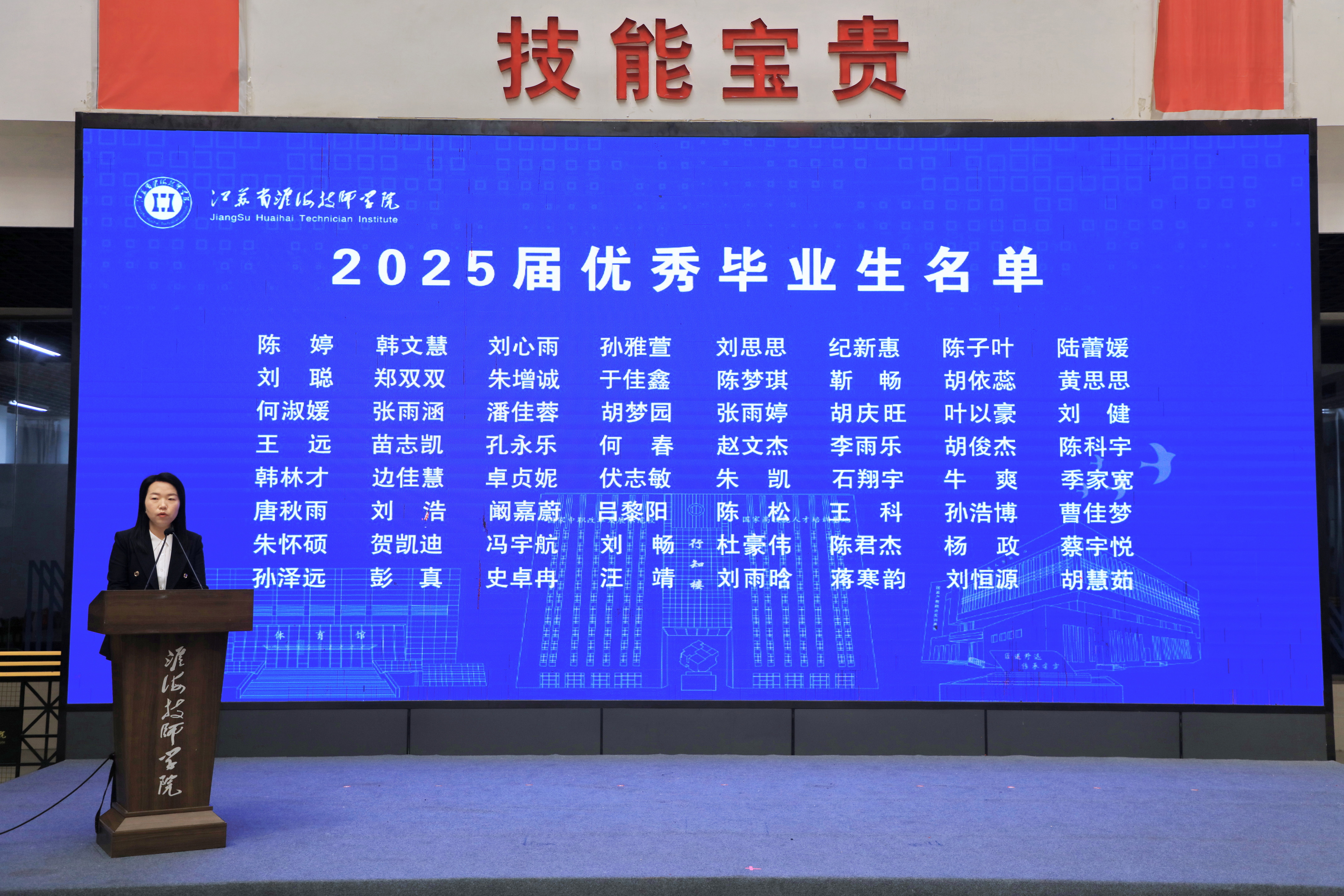 2025届学子在学习生涯中,彰显青春风采,贡献青春力量,在奋斗中积极书写挺膺担当的青春篇章,副院长王坤宣读了《关于表彰江苏省淮海技师学院2025届优秀毕业生的决定》。