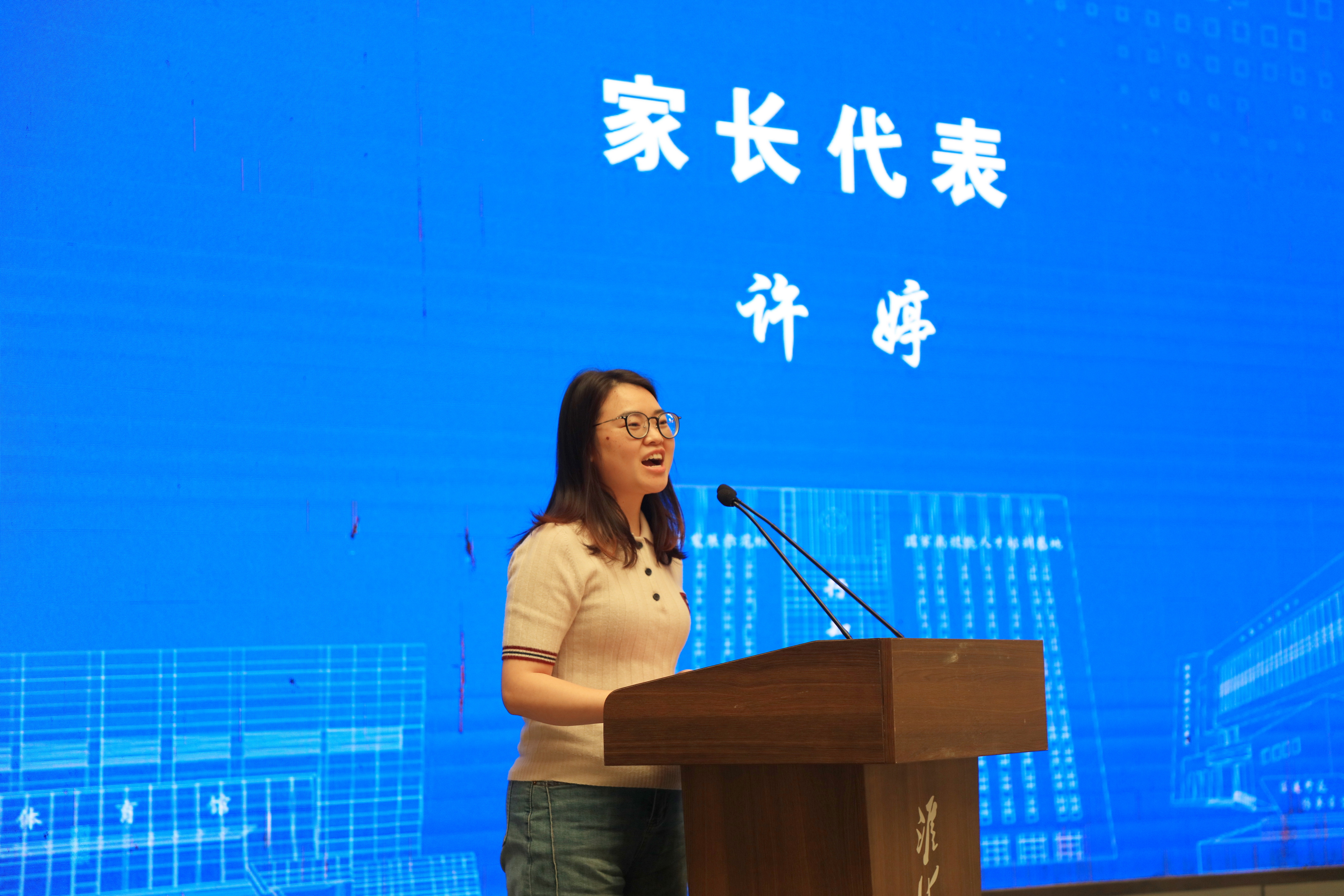 家长代表许婷向学院全体教职员工对同学们一直以来耐心细致的陪伴与教导表达了深深的感激。同时,她也祝福同学们能够成为具有高尚品格和高超本领的技能人才,在未来的日子里牢记母校教诲,自强不息,逐梦新征程!