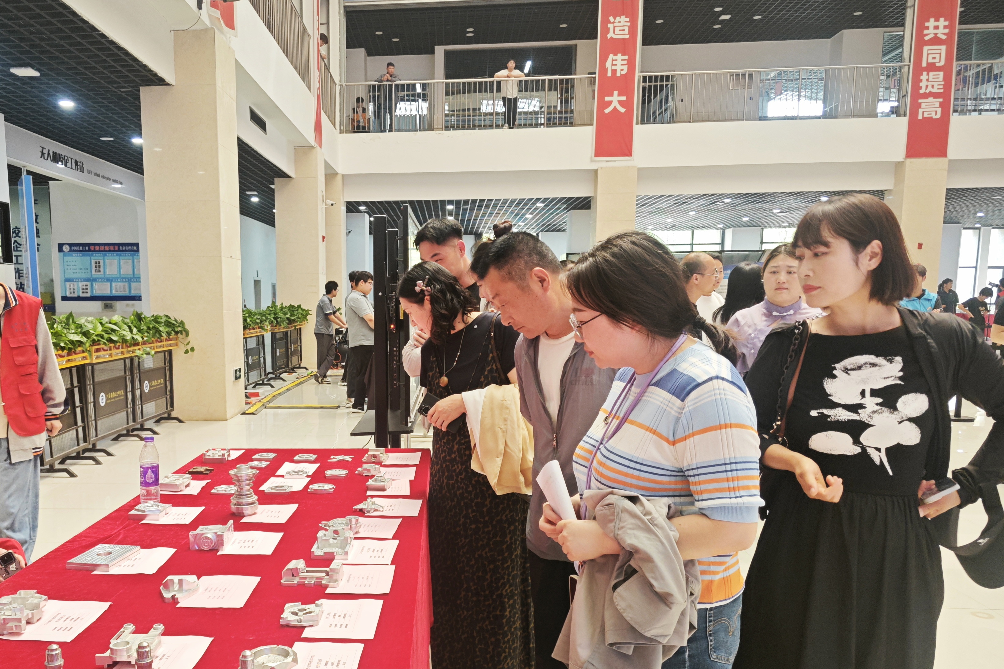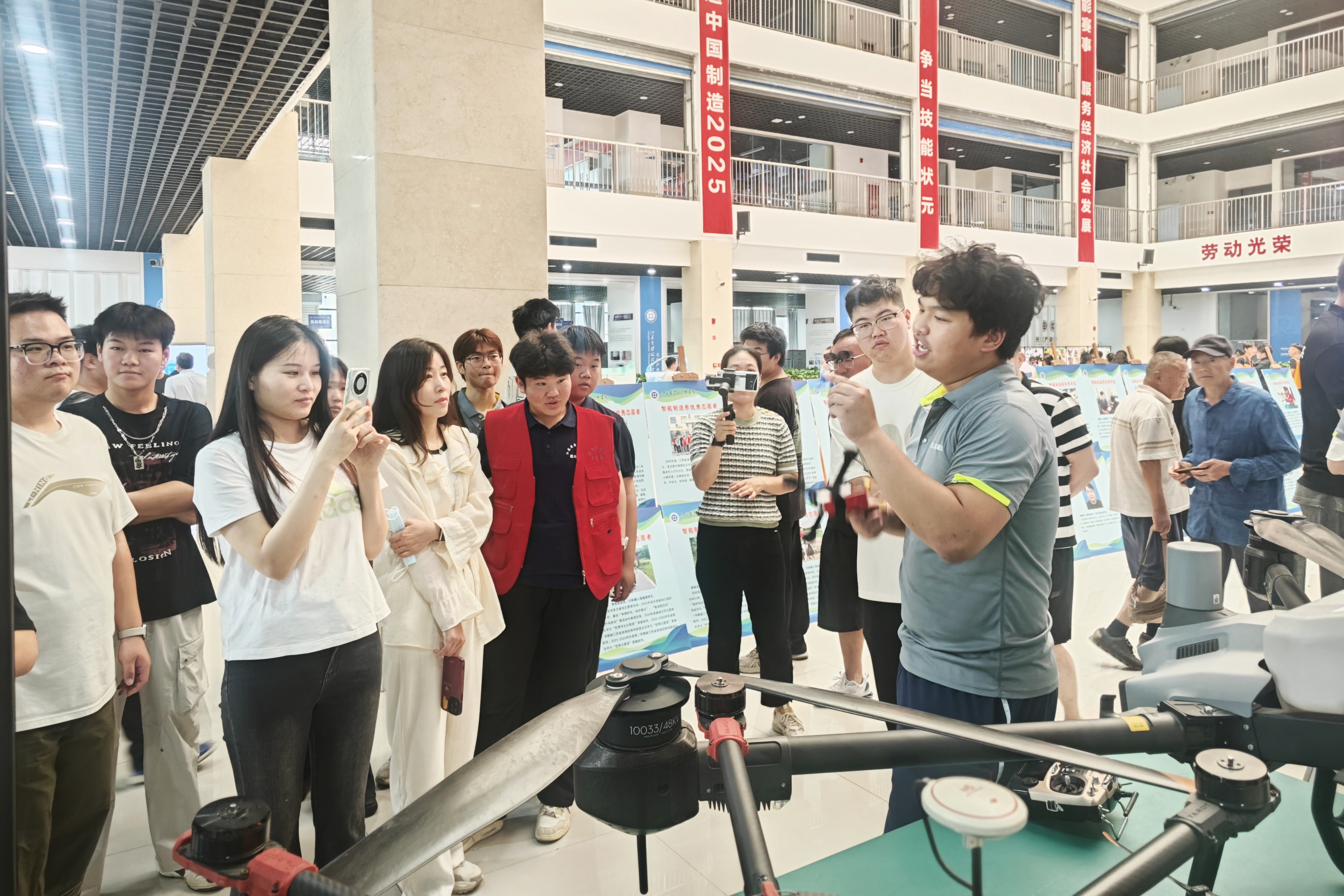 我院还特别设置技能成果展示区。踏入展示区,仿佛置身于一场创意与活力的技能盛宴。展台上摆放着学生们在技能节期间精心制作的各类作品,有造型独特、工艺精湛的模具作品、汽车喷漆作品,有功能丰富、构思新颖的电子虚拟展示,还有色彩绚丽、匠心独运的手工艺品、烹饪作品。操作演示区,无人机群、机器狗的新颖表演赢得了家长们的阵阵掌声,电商直播的精彩展示也引得大家驻足观看。
