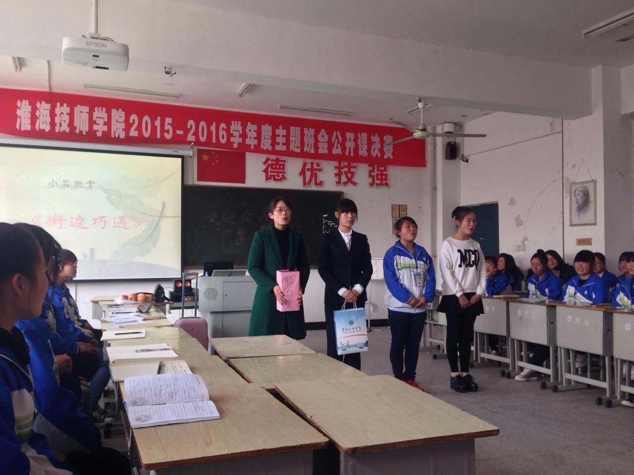 最终,经过激励角逐,14综高财会艺术凭借突出的主题、精心的准备、出色的临场发挥摘得本次班会课大赛桂冠,15综高财会美术班、14财会班分列二、三名。