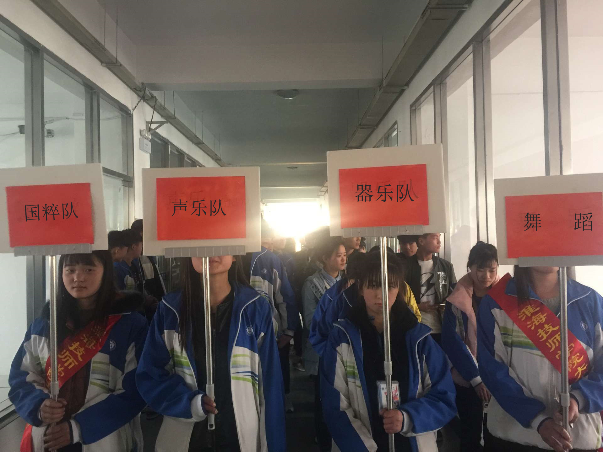 报名参加的每位同学都想通过“淮海艺术团”这个平台来锻炼自我、展现自我、提升自我价值。为了保证能有新鲜血液注入自己所在的团队,艺术团各队负责人尽心尽职、“脑洞大开”、极尽所能地拉拢自己心仪的队员,穿梭于整个报名、面试现场。