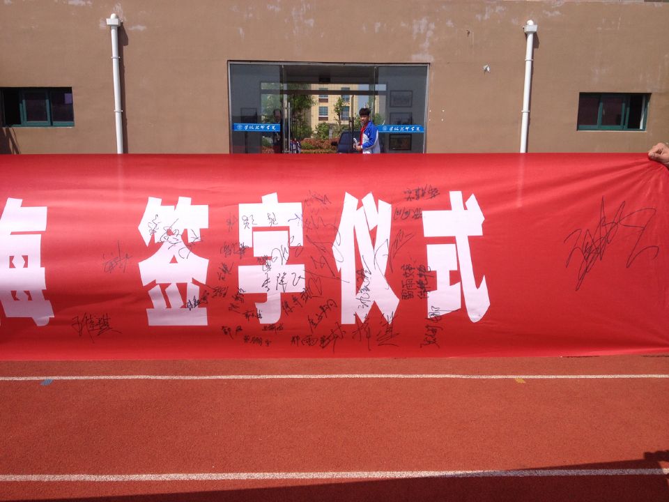 升旗仪式结束后,院学生会组织了“有序排队、不乱扔、做文明淮海人”的签字仪式,通过这个仪式让同学们参与到文明校园创建中来。