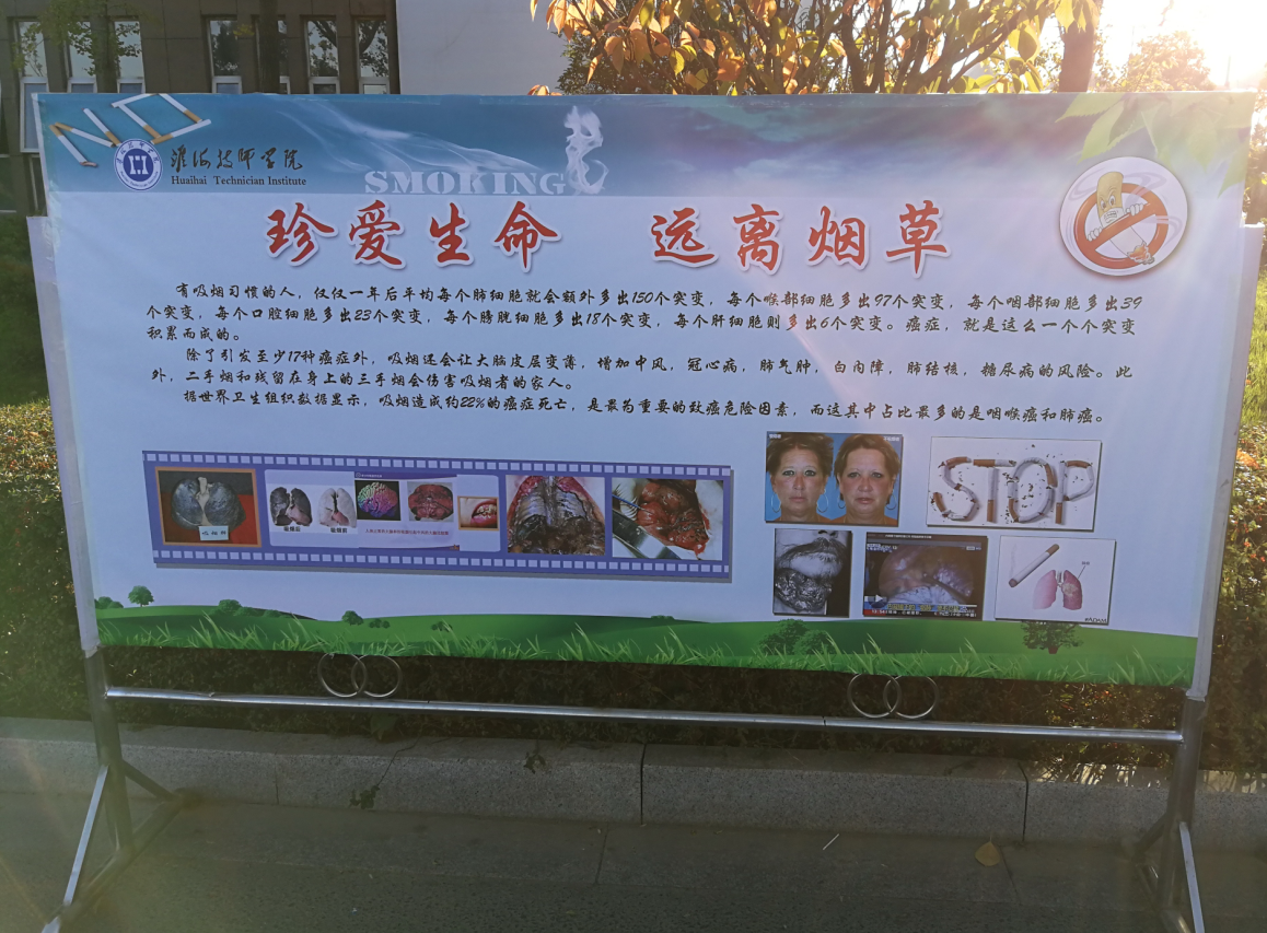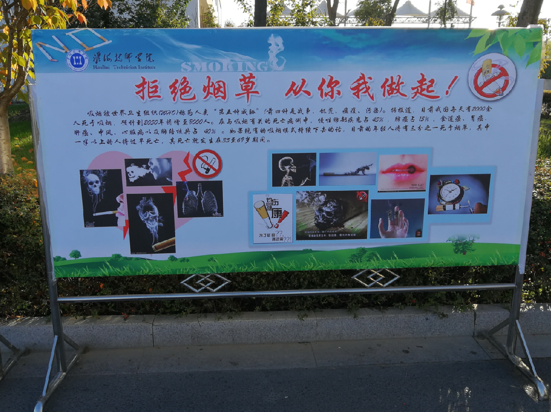 本次活动通过主题班团课、宣传展板展示等形式开展宣传教育活动,让学生认识到吸烟造成的危害,以唤起全院师生的禁烟意识,从而树立健康新风气,营造健康的校园新时尚。