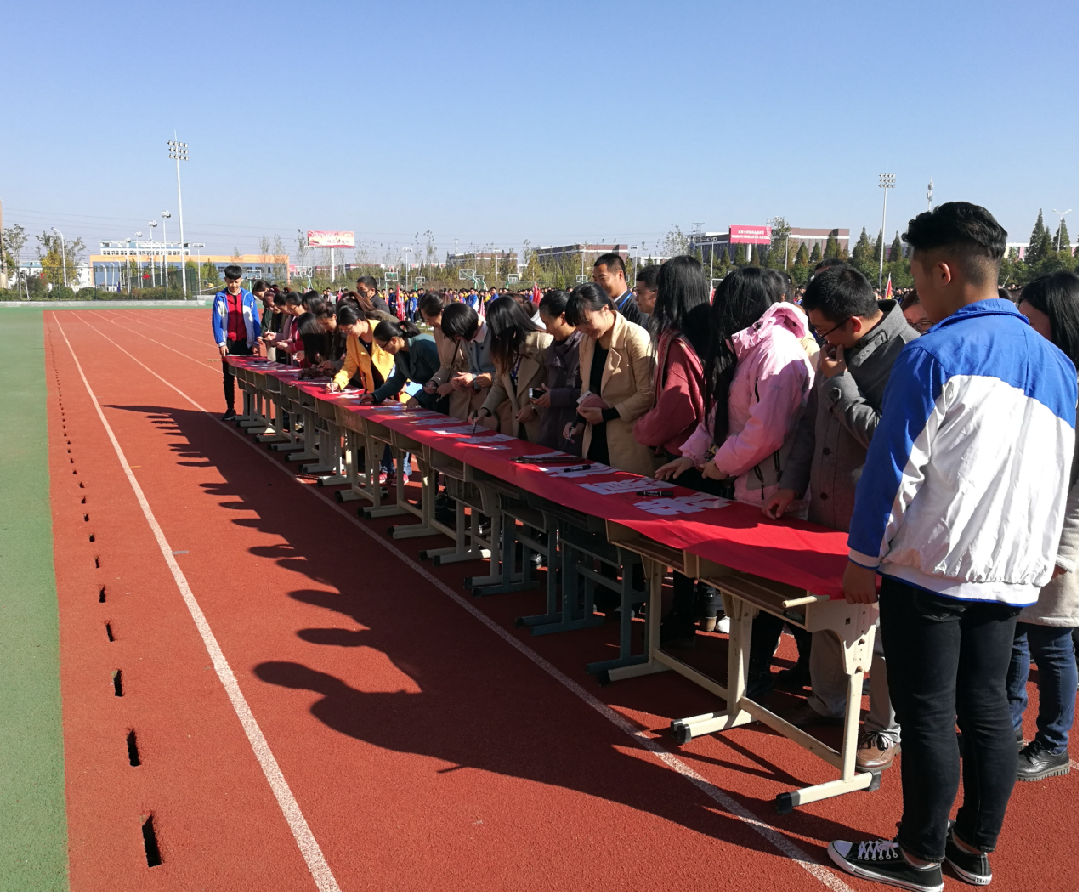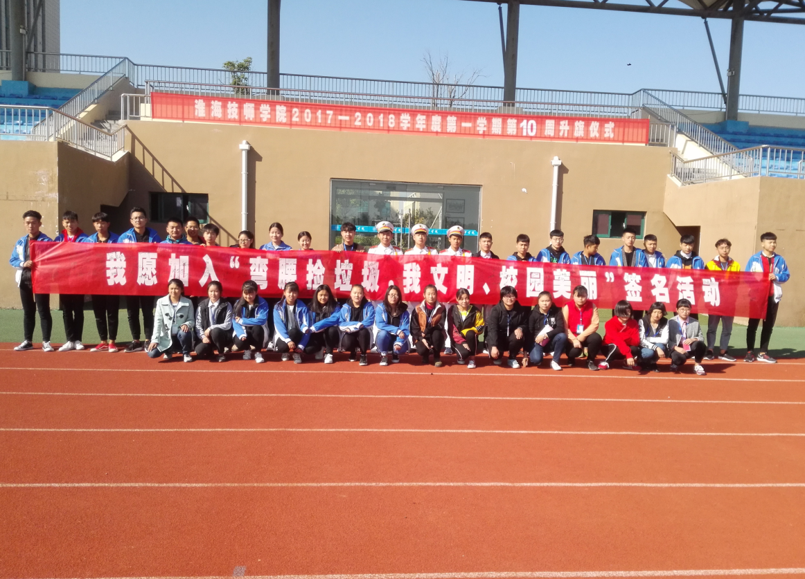 10月30日上午,我院在田径运动场举行第十周主题升旗仪式,并组织开展了“弯腰捡垃圾、我文明、校园美丽”签名活动。全院师生参加了活动。