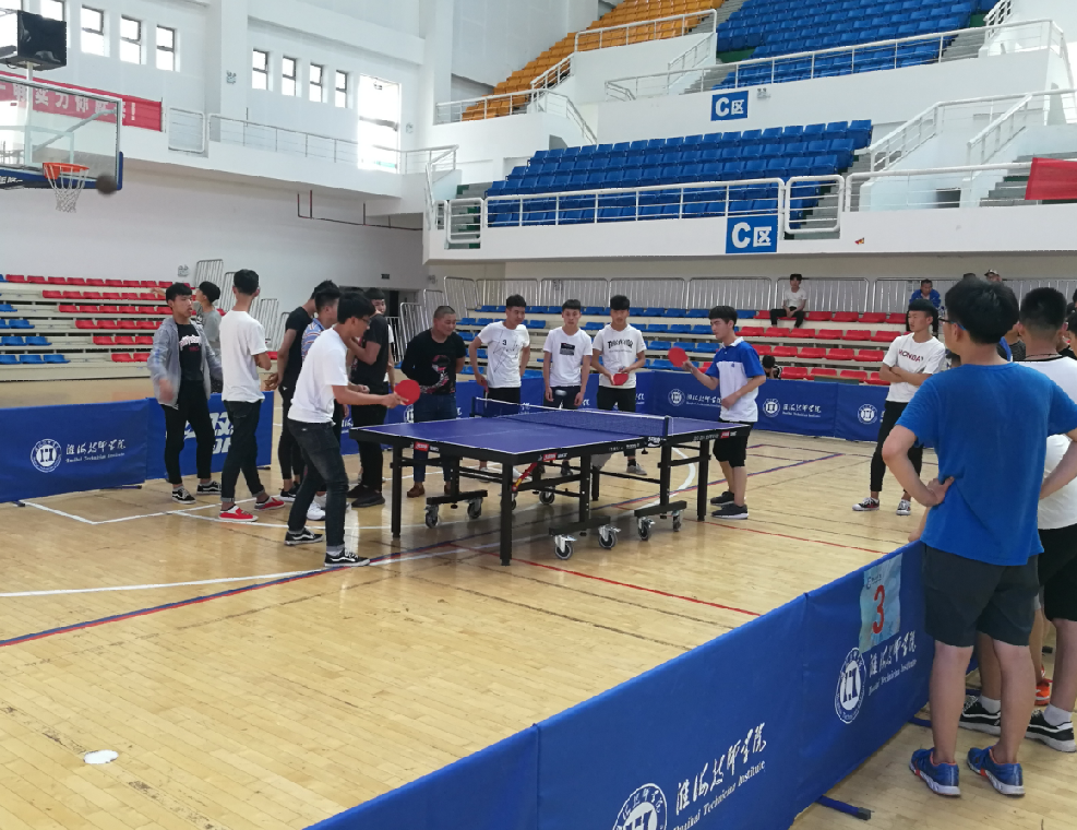 6月12日,我院在体育馆举行师生乒乓球赛。来自各系部的五支参赛队参与了本次活动。