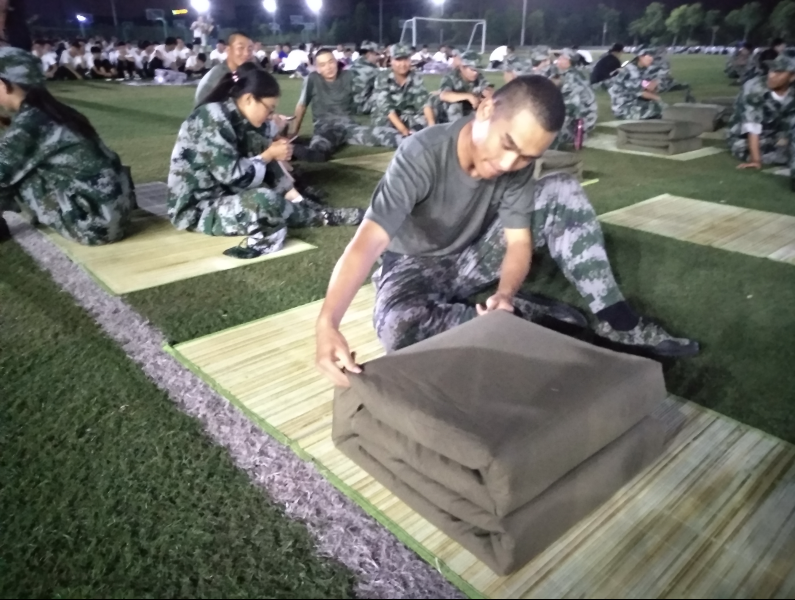 本次叠被子比赛,每个排有10名新生参加,由各排择优产生。随着军训总指挥一声令下,参赛选手迅速开始比赛。热火朝天的比赛场面、整齐的被褥,成为军训生活一道亮丽的风景线。比赛开始,参赛选手迅速行动,个个都卯足了劲儿,叠起被子来相当得迅速,铺平、压实、翻折、抠角、捏线,不足10分钟,一床床整齐的“豆腐块”被子便呈现在足球场上。