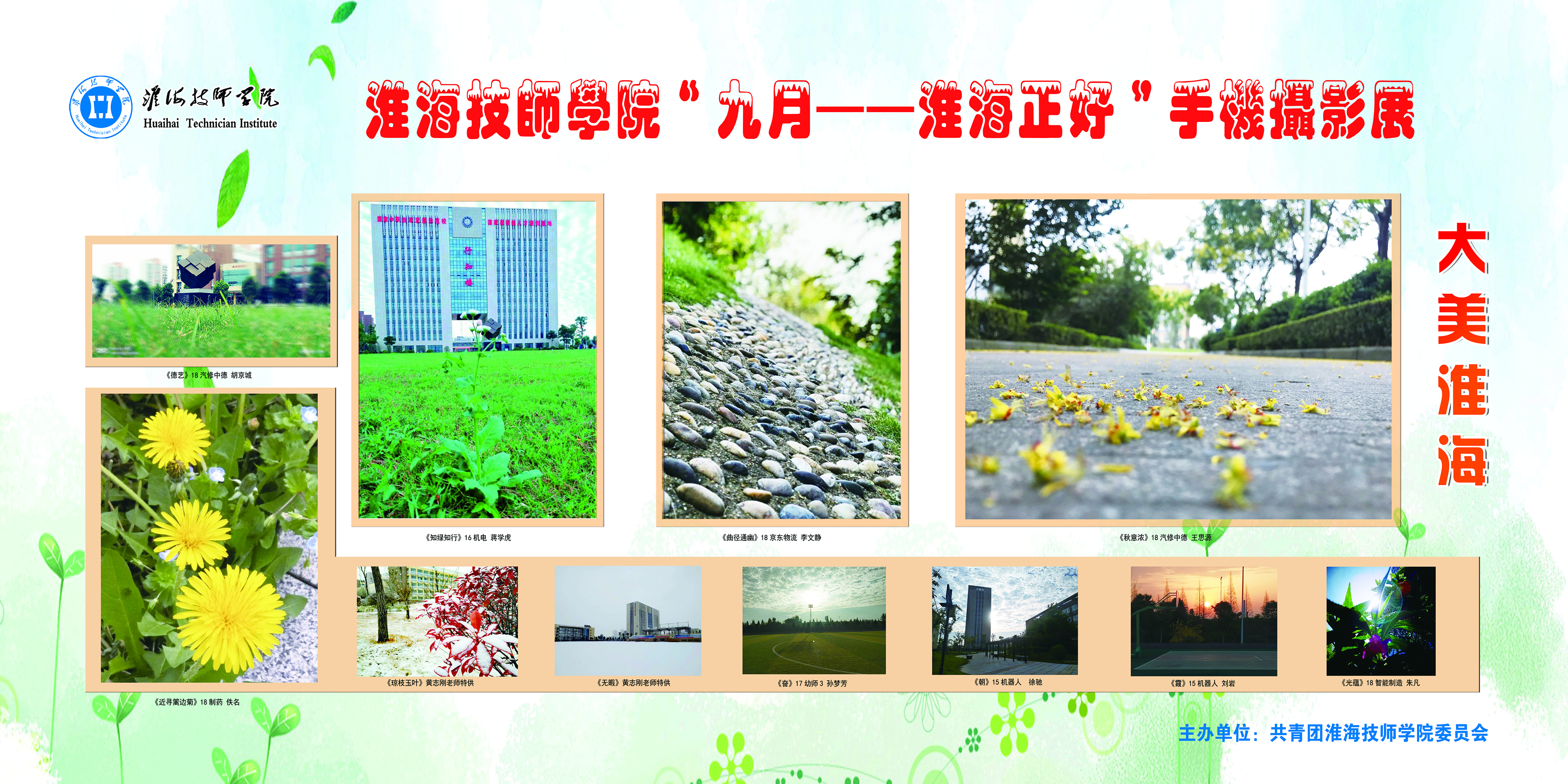 9月26日,我院本年度“九月—淮海正好”手机摄影展在学院主干道开展。本次摄影展是我院2018年“迎新月”系列活动之一,由学院团委主办。