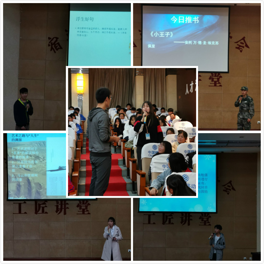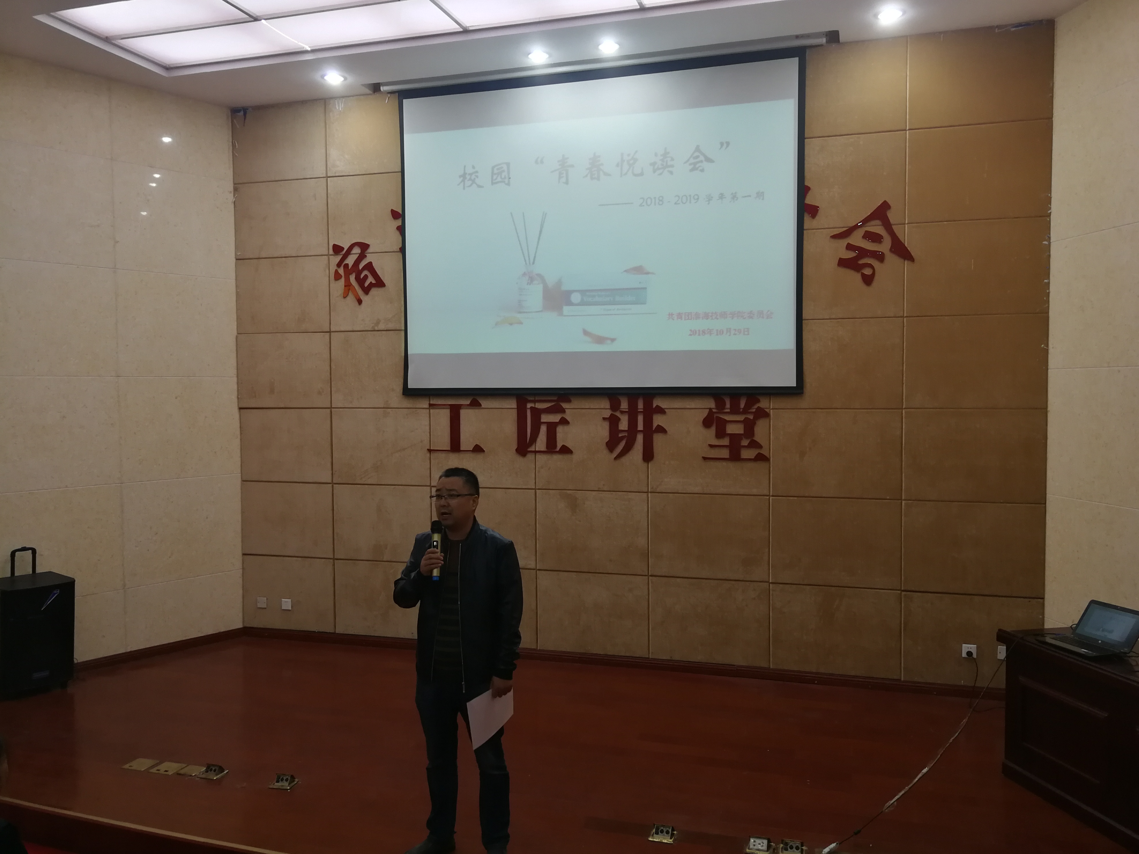 为激发全院师生形成享受阅读乐趣的良好习惯,营造书香校园,引导学生放下手机、远离网络、走近经典,我院团委于10月29日晚自习期间,在学院第二报告厅组织了本学期第一期“青春悦读会”活动,来自全院各系部的近两百名阅读爱好者同学通过报名参与活动,聆听了九名学生“阅读推介大使”的读书推介演说。活动由团委魏燃老师主持。