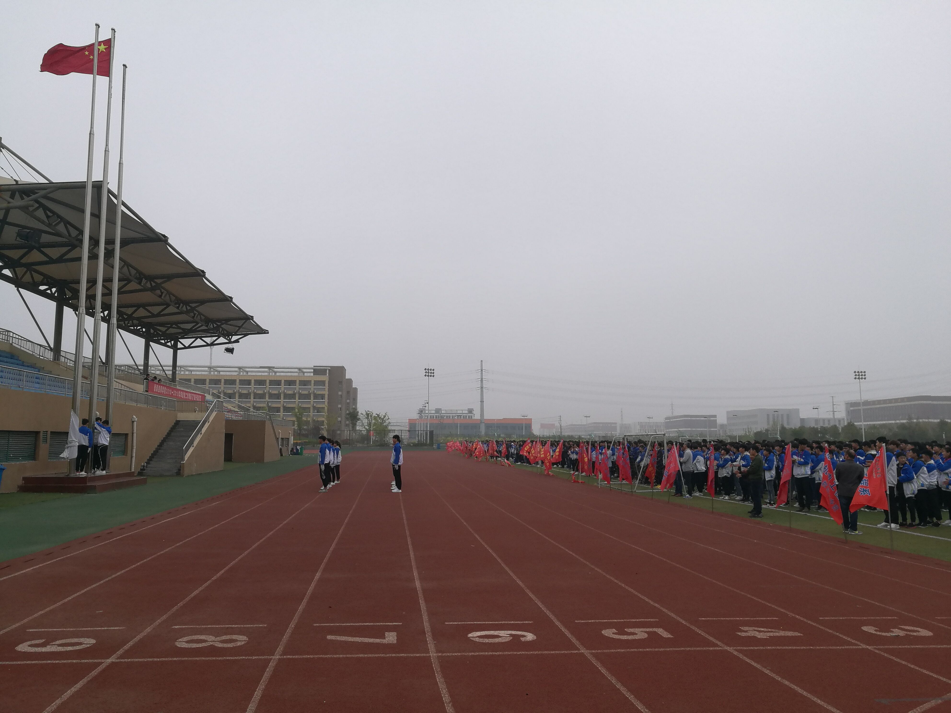 为普及安全知识,增强学生的安全意识, 4月8日上午,我院在田径运动场举行“学会自我保护,安全伴我行”主题升旗仪式。全院师生参加了活动。
