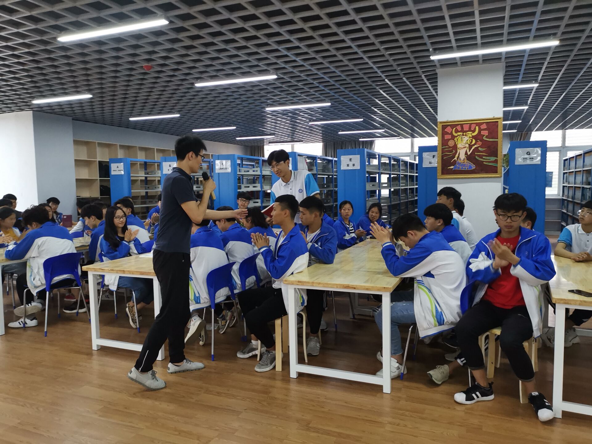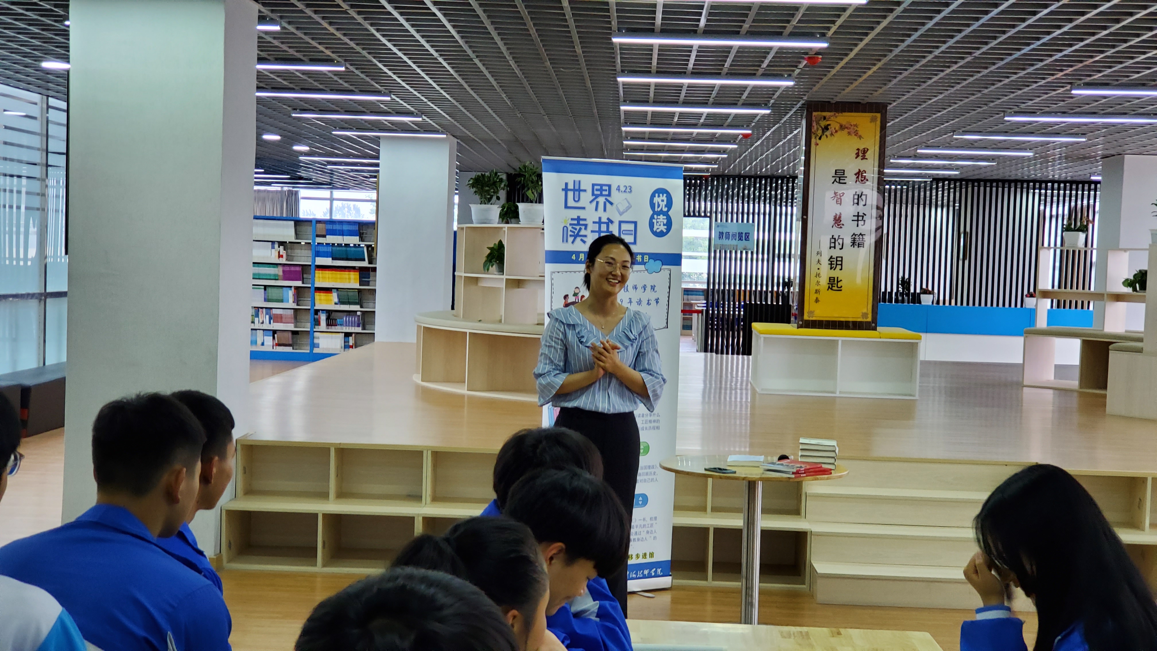 为纪念五四运动100周年,激发青年同学形成享受阅读的良好习惯,营造书香校园,引导学生放下手机、远离网络、走近经典,由学院团委和图书馆联合开展的“五月话青春”主题校园青春悦读会活动,于5月16日下午在学院图书馆二楼举行,来自全院各系部的60余名阅读爱好者同学通过报名参与活动。活动由团委魏燃老师主持。
