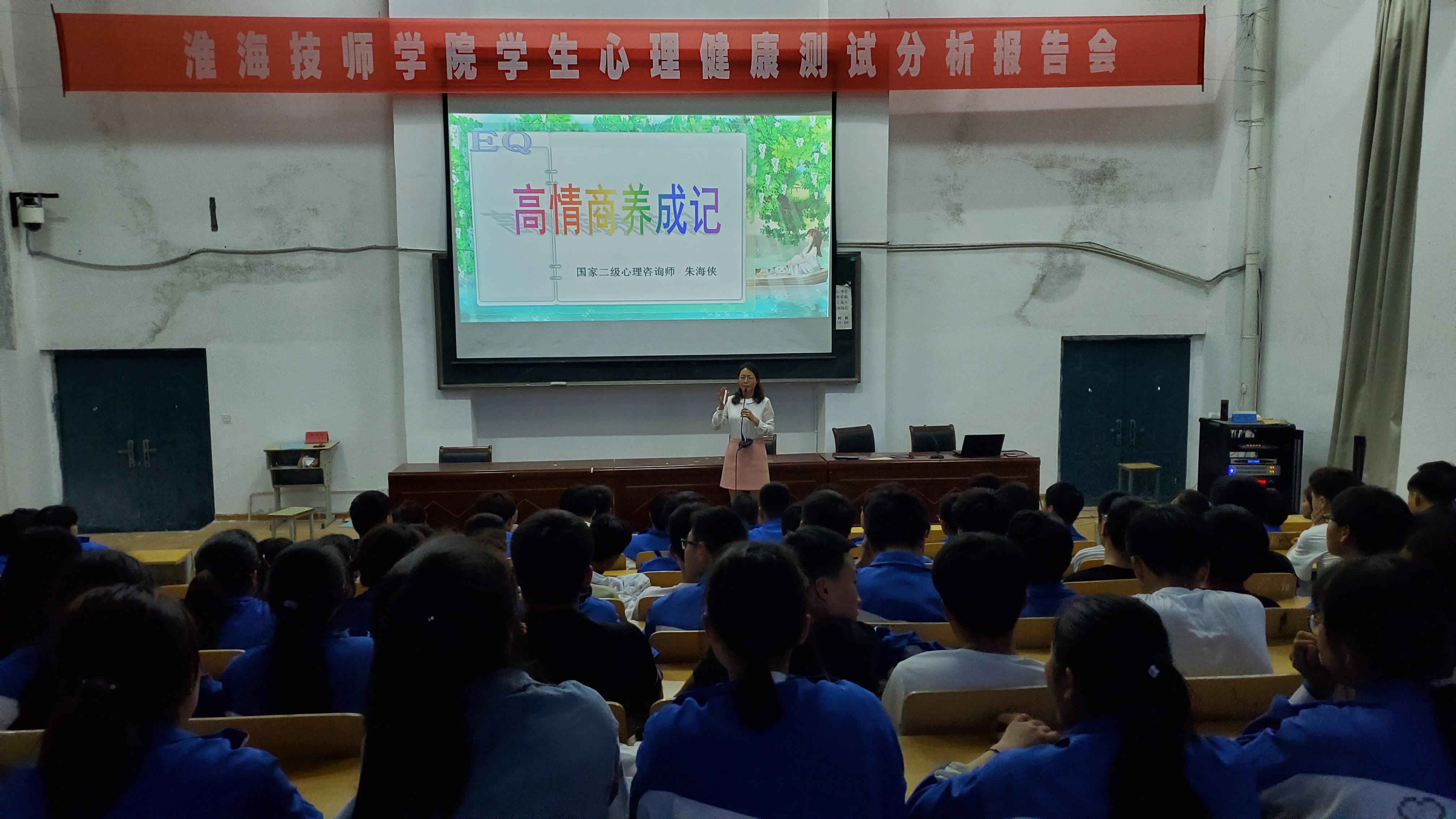5月23日,我院心理健康系列讲座于第三报告厅继续开讲,本期讲座主题为“如何养成高情商”。讲座邀请宿迁市欣语未成人成长指导中心国家二级心理咨询师朱海侠老师到校主讲,来自我院2018级的150余名同学代表参加讲座。