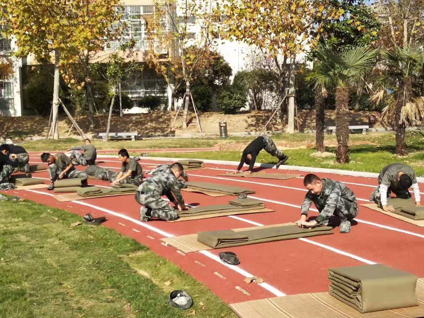 为了培养学生良好的生活习惯,锻炼学生的生活自理能力,11月20日下午,湖滨校区在体育场举行了叠被子比赛活动。