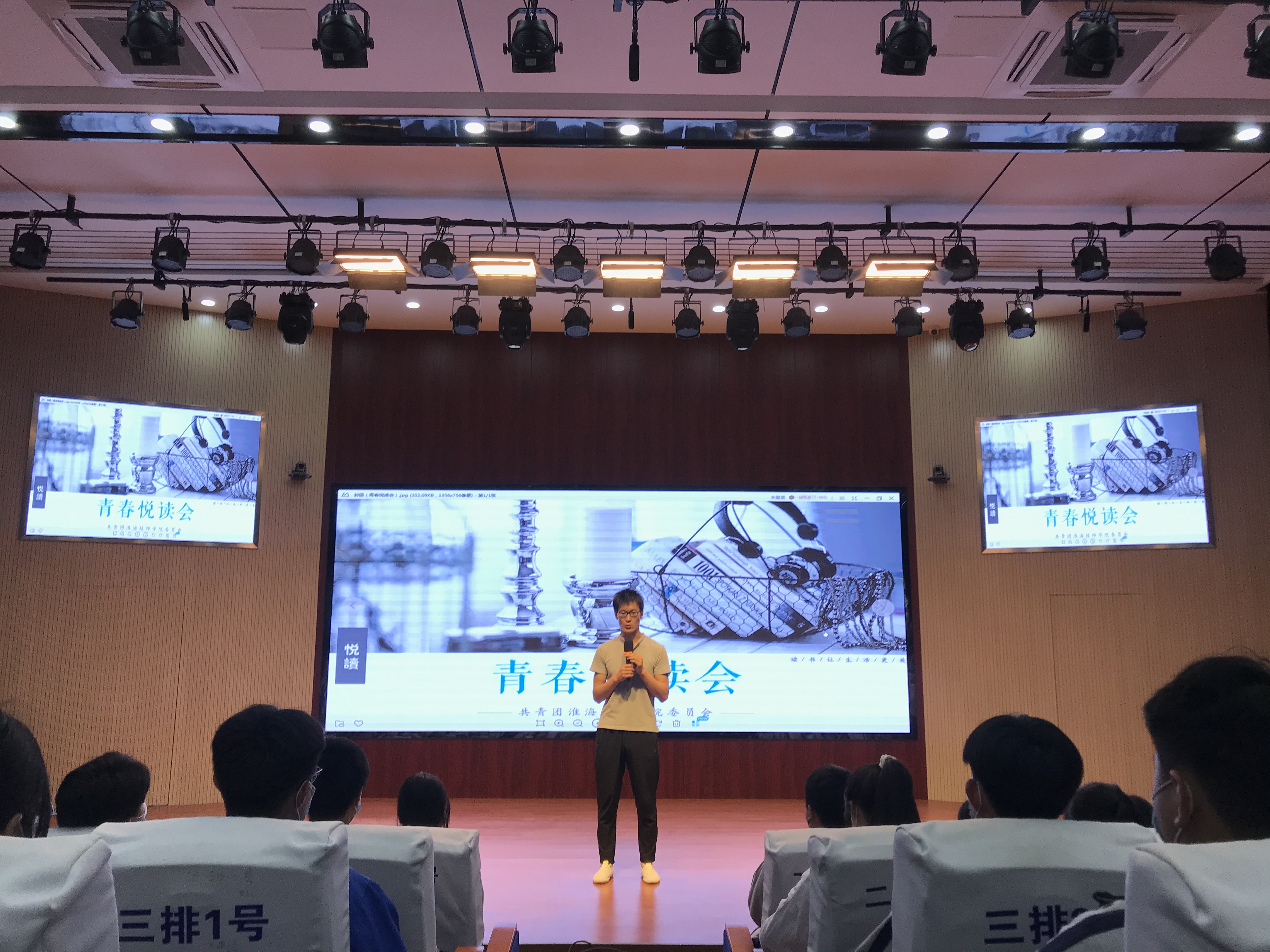 为激发全院学生形成享受阅读乐趣的良好习惯,营造书香校园,引导学生放下手机、远离网络、走近经典,我院团委于5月26日晚自习期间,在学院蓝海剧场组织了第三期 “校园青春悦读会”活动,来自全院各系部的150余名阅读爱好者同学通过报名参与活动,聆听了三名学生“阅读推介大使”的读书推介演说,活动由团委魏燃老师主持。