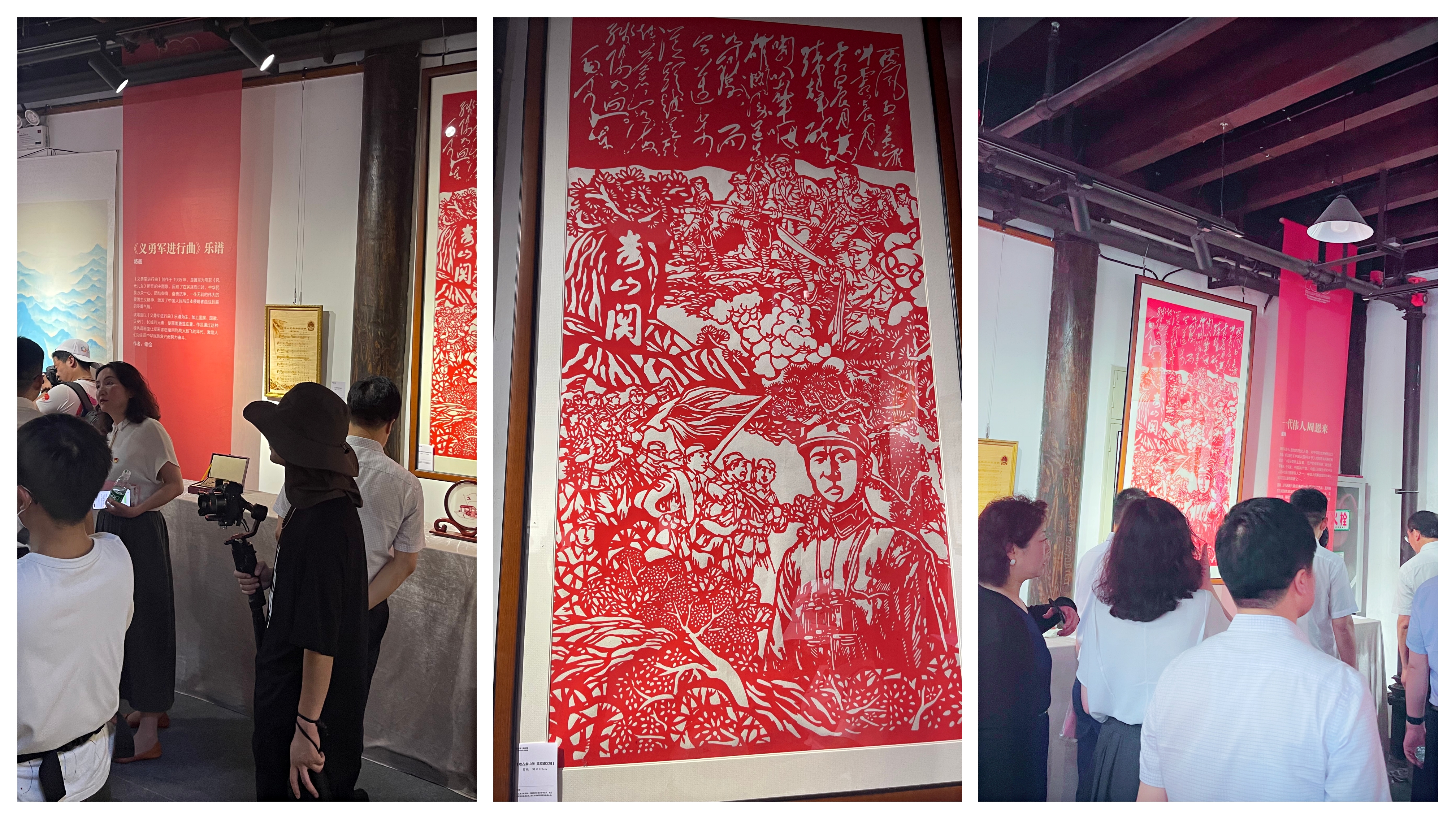 作品《攻占娄山关》取材于红军长征中征战娄山关的紧张激烈场景,创新的用剪纸这一艺术手段,勾勒出一幅雄浑壮阔的冬夜行军图,表现了先烈不畏牺牲、奋勇向前的革命大无畏精神;作品《秋收起义》取材于“秋收起义”这一历史事件,表现了党独立领导革命战争的决心的艰难历程。两幅作品立意恢弘,制作精美,引起观展嘉宾的一致称赞和驻足观看。