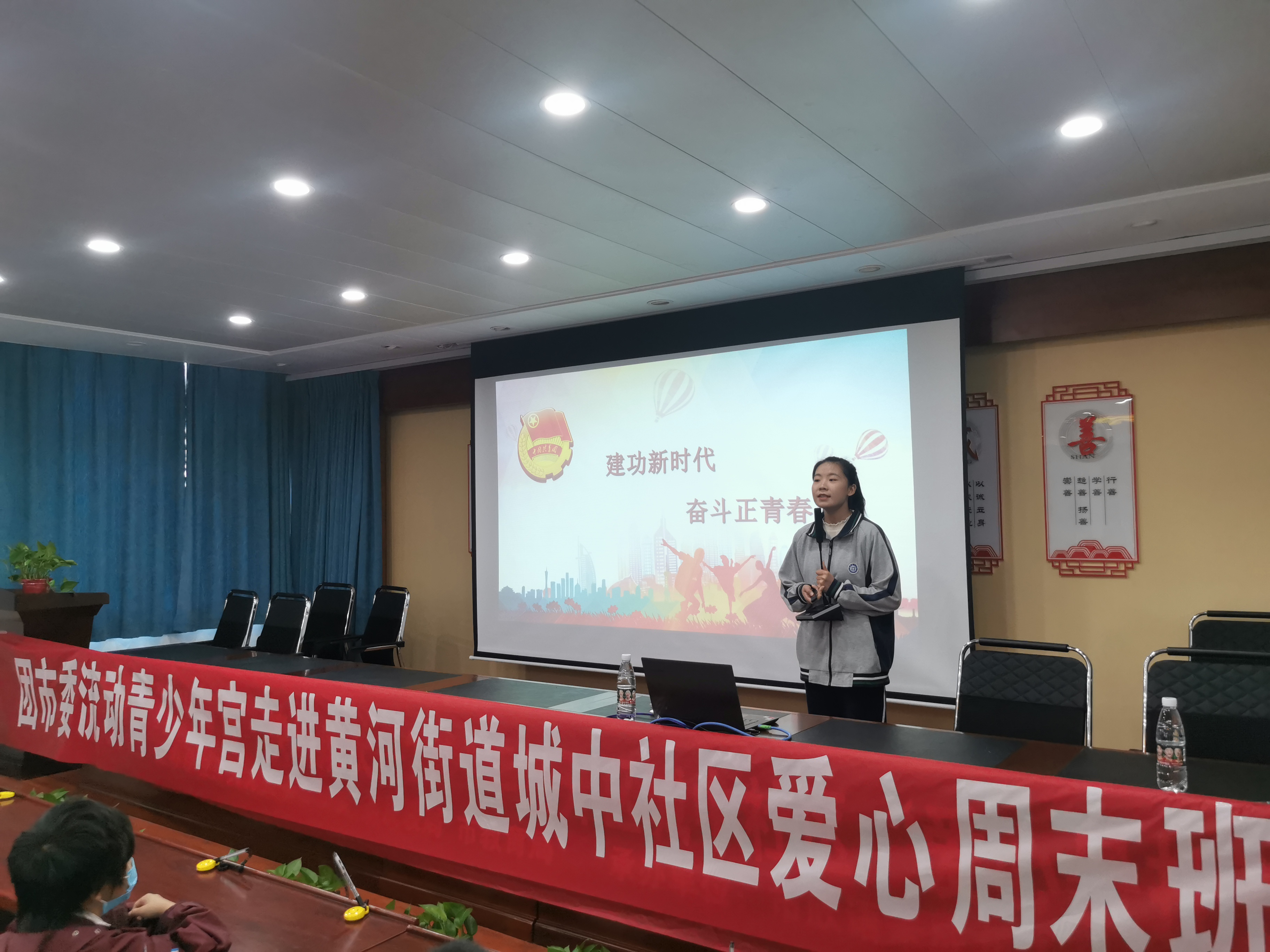 在主题为“请党放心 强国有我”的微课堂环节,两位大姐姐闪亮登场,金泯男同学首先从大家日常使用的手机说起,引导现场小朋友要合理分配时间,向榜样学习,以时不我待的精气神茁壮成长,将来能够以更加强大的自己为祖国、为民族奉献青春力量,树立“请党放心 强国有我”的坚定信念。陈雨同学则通过100年前的“90后”、“00后”为国家、为民族抛头颅、洒热血的往事;建国初期“两弹一星”元勋舍弃小我、无私奉献的过往以及新时代青年“后浪奔涌”的激情,激励现场小朋友不忘历史、牢记幸福生活的来之不易,珍惜现在、好好学习。