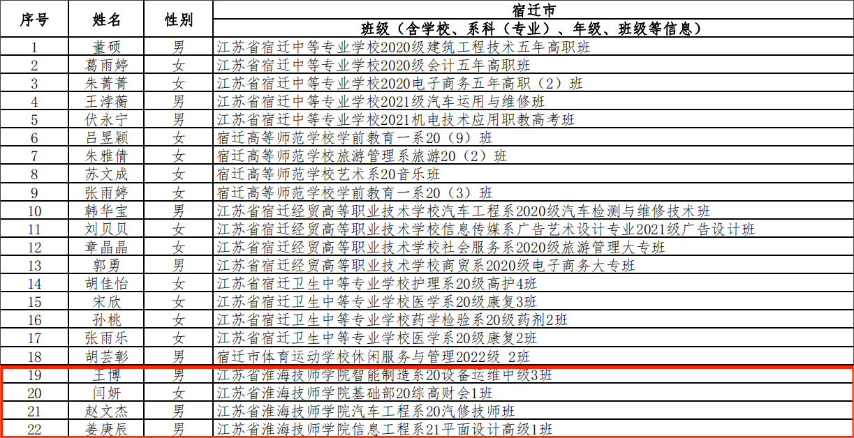 江苏省“三创”评选活动,是落实全国职业教育大会精神和立德树人根本任务的重要内容,是弘扬社会主义核心价值观,充分发挥新时代勇于创业、敢于创新、善于创优先进典型的舞台,是培养具有工匠精神的高素质技术技能人才的标杆。此次评选,我院20设备运维中级3班王博等4名学生获“江苏省三创优秀学生”称号;21数控技师班张春旺获“江苏省优秀学生干部”称号;20电子商务高级班、20高铁中级3班获“江苏省先进班集体”荣誉。