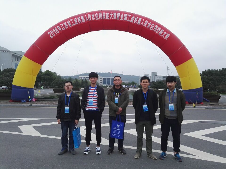 此次工业机器人技术应用技能竞赛作为全国工业机器人技术应用技能大赛选拔赛,由苏省经信委、江苏省人社厅、江苏省教育厅联合主办,规格高,赛程紧,竞争激烈。因此院系领导高度重视,经过层层筛选,集中培训,最终确定了机电工程系付帅、刘冬、朱木、时冠中、沈昊5位师生参加此次比赛。