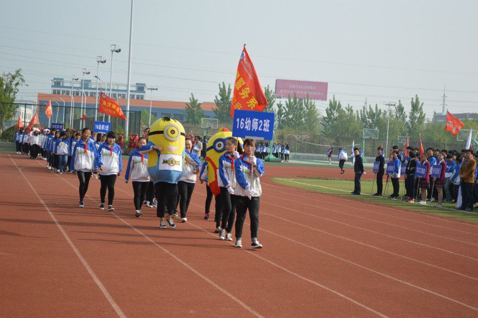 商贸服务系的开场独树一帜,莘莘学子整齐划一尽显雄威——高铁女神仪态优雅、端庄大方;幼师队伍小黄人打头阵,童趣又可爱;安检鲜花方队花团锦簇、活力四射;烹饪方队步伐整齐,刚劲有力;文员姑娘昂首挺胸、一展青春气息。
