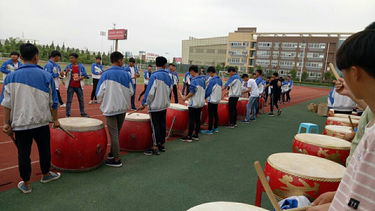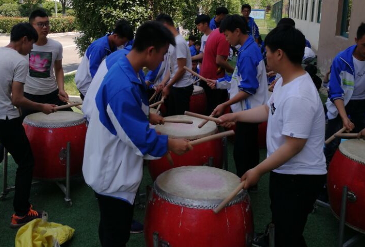 在王教练指导下,半个月下来,锣鼓队训练目前已初见成效。只见同学们顶着烈日,精神抖擞、激情澎湃,结合昂首、跨步、张臂等动作,鼓声节奏跌宕起伏,由松到紧,疏密有致,既清晰流畅,又激越轩昂,具有极强的音乐性和可欣赏性。朱元璋曾赞:“凤阳有花鼓,天井有锣鼓。”