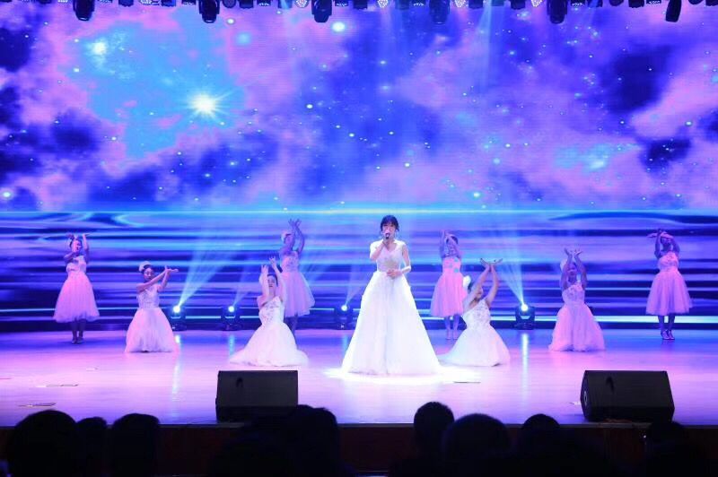 歌伴舞《蓝色海洋》由我院商贸服务系教师王元元演唱,幼师专业吴梦婷、沈思佳等八位同学担任伴舞。歌声嘹亮,慷慨激昂;衣袖舞动,似有无数花瓣飘飘荡荡凌空而下,牵着一缕缕沉香。节目引人入胜,不时博得阵阵掌声。歌伴舞《蓝色海洋》不仅歌颂了祖国大好河山,秀丽风景,还表现了新时期在中国共产党的领导下,全国上下万众一心,取得的卓越成就。
