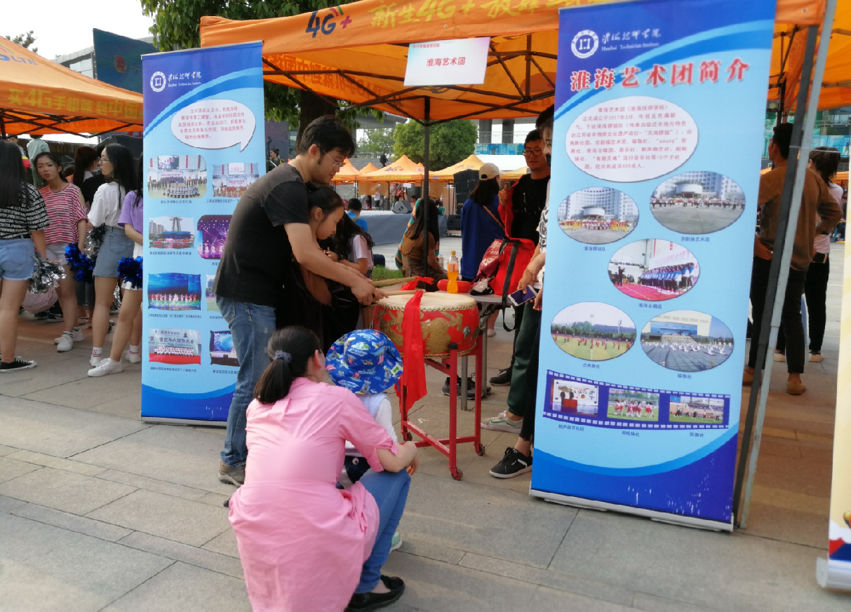 我院淮海艺术团经团市委推荐,作为宿迁市唯一代表社团,受邀参加了此次代表全省最高水准的学生社团“大聚会”。在5月12日晚的“我的青春,我的团”主题沙龙上,艺术团代表陈一鸣同学,还受邀上台和与会兄弟社团进行主题分享,详细的介绍了淮海艺术团的组建以及活动开展情况。在5月13日的社团展示环节,艺术团团员的太极拳展示、街舞表演、淮海锣鼓等特色表演成为会场中引人瞩目的焦点,吸引观众纷纷驻足观赏,拍照留念。