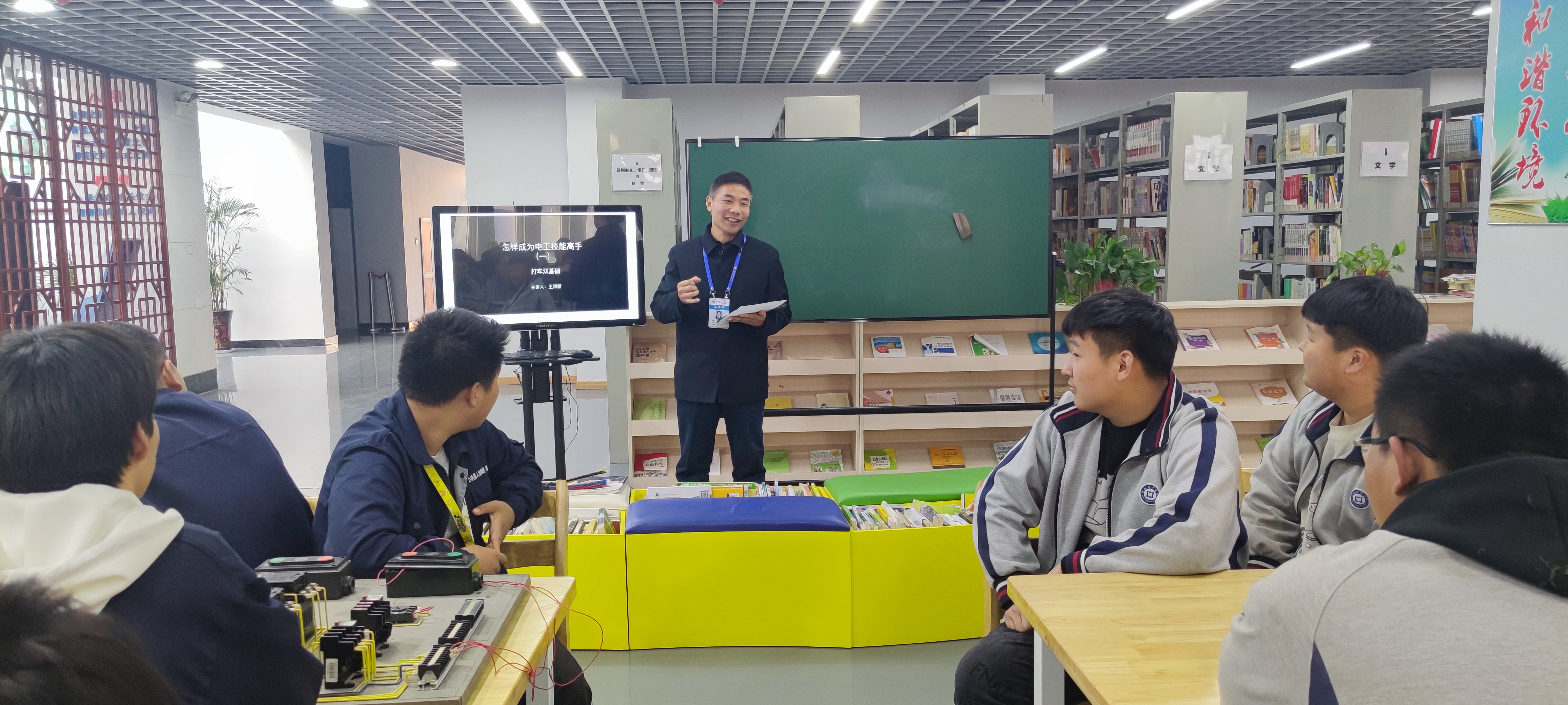 11月25日下午,我院首期工匠书院讲座——《怎样成为电工高手》在图书馆开讲。来自不同系部的一百多名学生聆听了讲座。