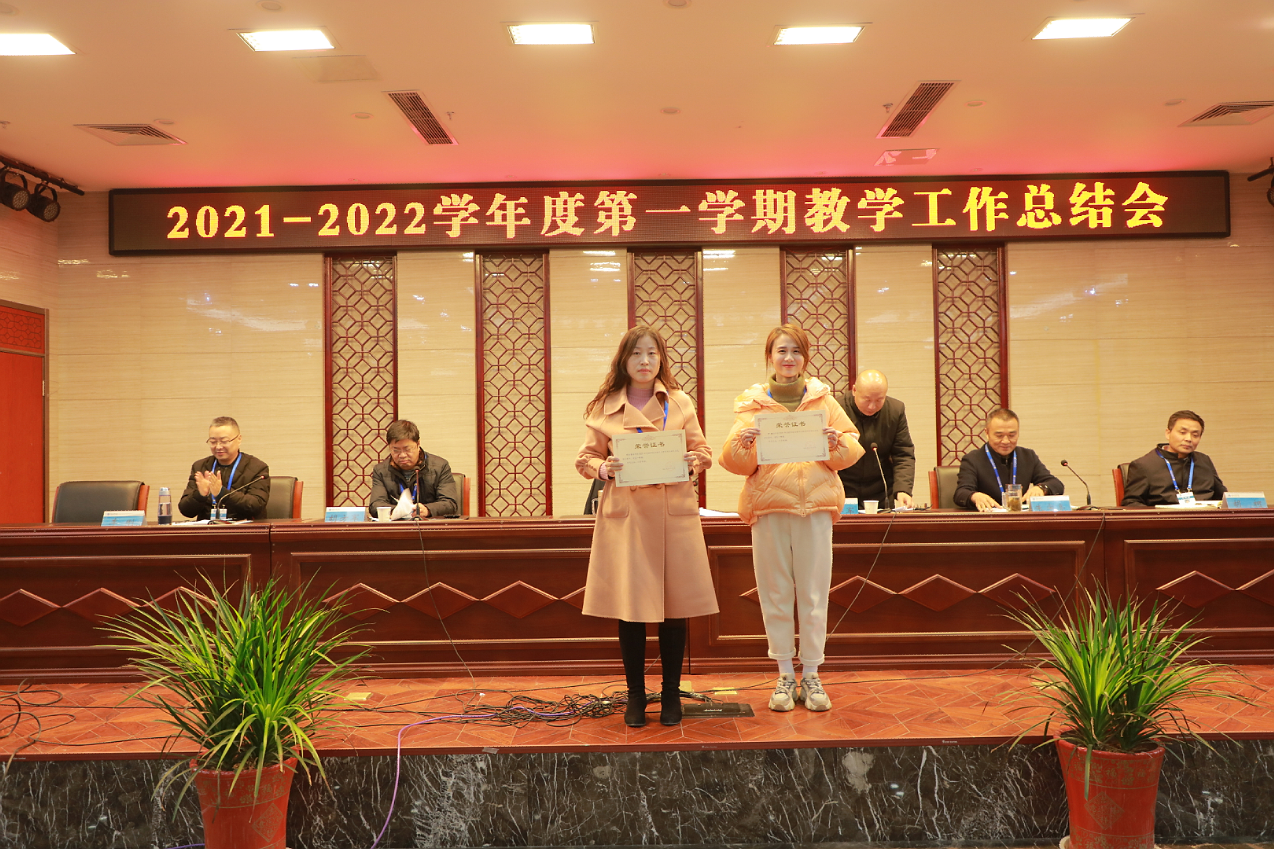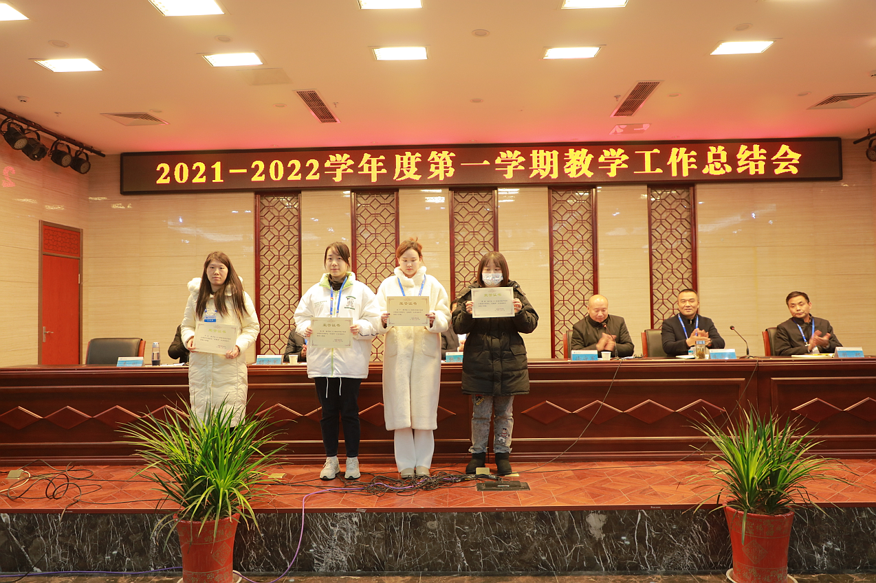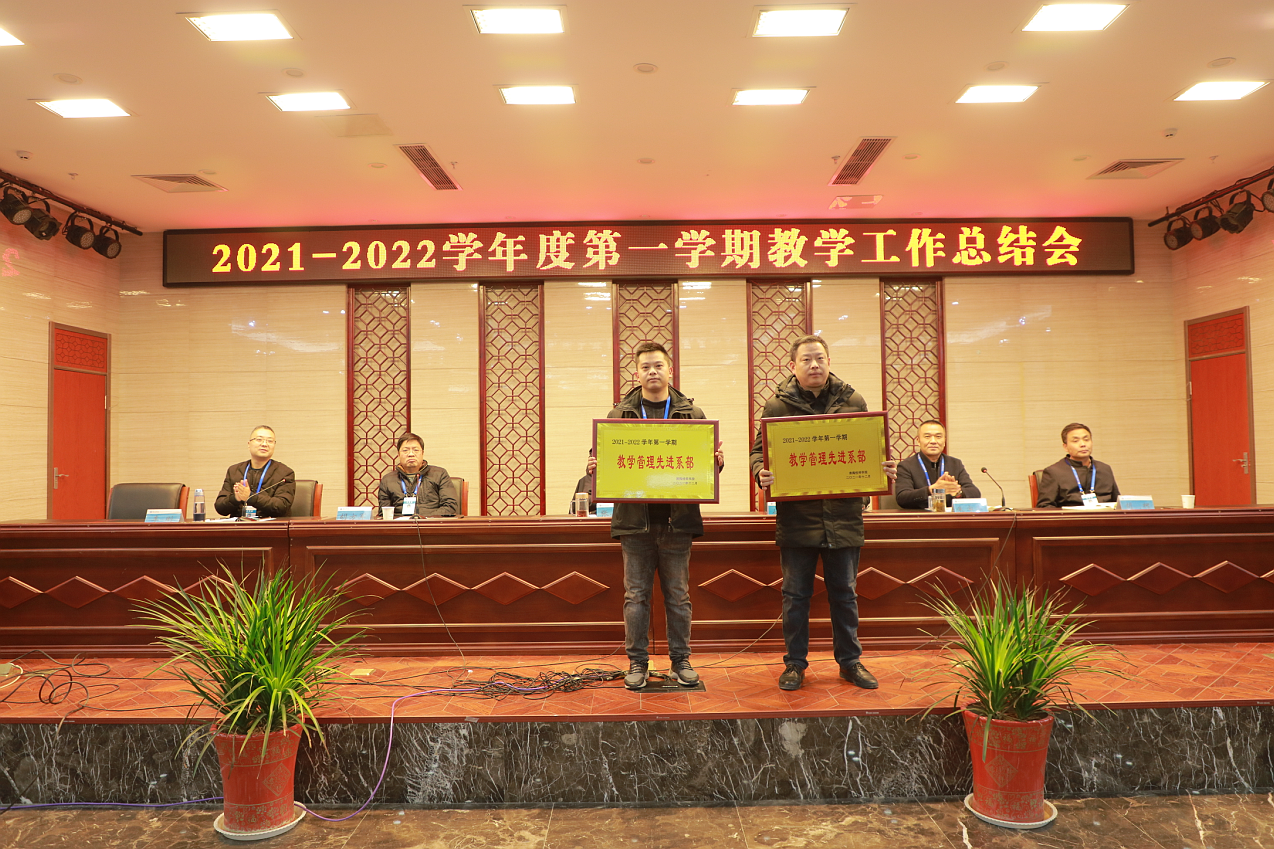 期间,纪委书记胡方军宣读了在“三笔字”比赛、论文评比、示范课评比中获奖教师名单,以及年终教育教学视导检查先进系部,院领导为获奖教师和系部颁发了奖状和奖牌。