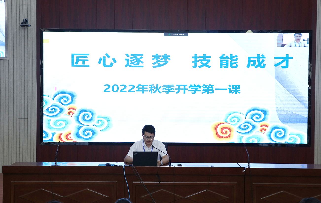 为大力弘扬劳模精神、劳动精神、工匠精神,激励学生走技能成才、技能报国之路,9月22日下午,我院举行2022年秋季学期开学第一课。2022级新生班级代表120余人现场听课,全院师生通过线上直播同步听课。