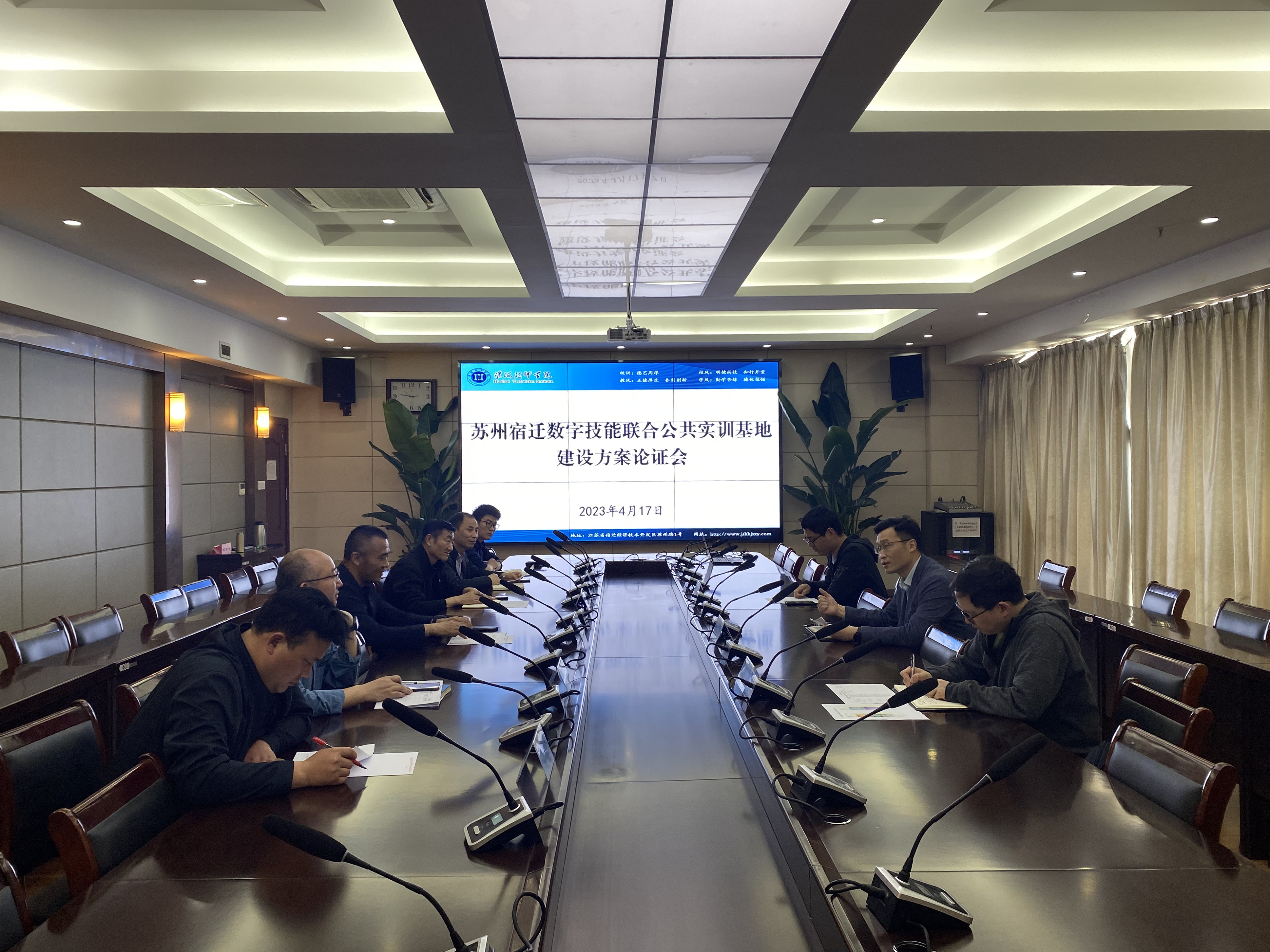 4月17日,苏州宿迁数字技能联合公共实训基地建设方案论证会在我院召开。江苏省苏州技师学院委派鲁毅、嵇宗源两位数字技能类专业教师,与我院科研处、财务处、后勤处、培训处、信息工程系负责人组成联合专家组对基地建设方案进行研讨论证,市发改委经济合作处副处长靳宏伟作为特邀嘉宾全程参与指导。会议由学院副院长朱宇亮主持。